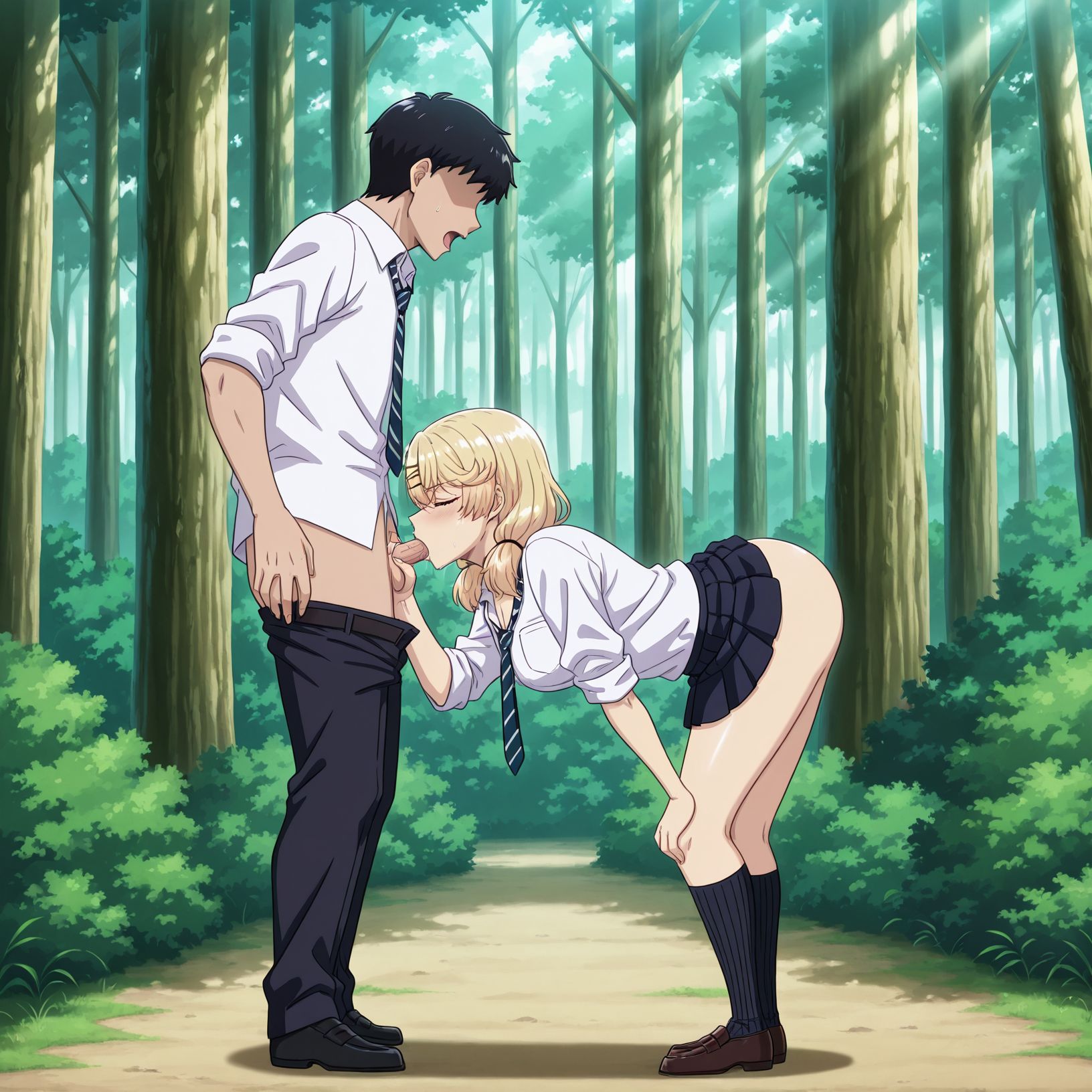 closed eyes, outdoor blowjob,