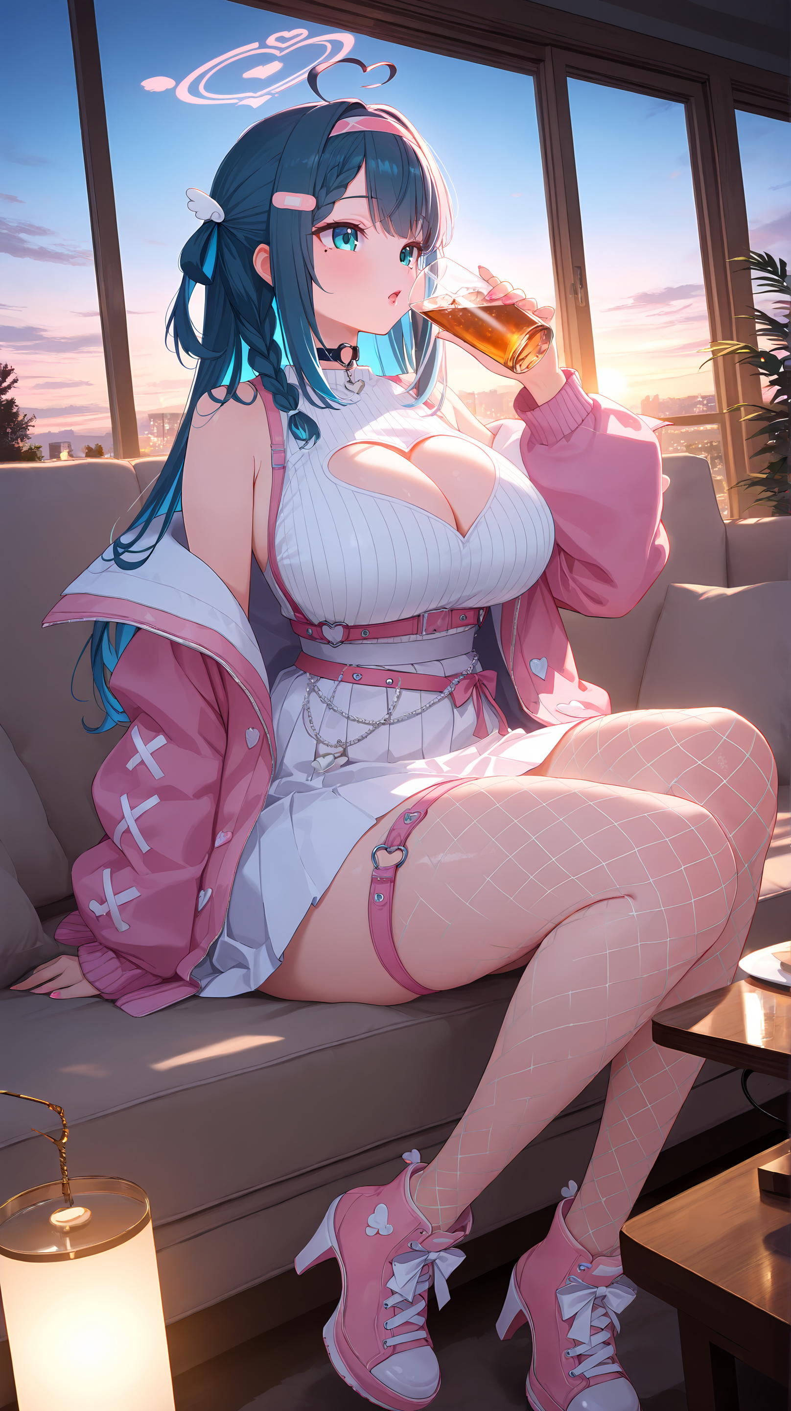 | 학습된 단어 | Nene Amano, virtual youtuber 1girl, solo blue eyes, aqua eyes, (blue hair, :1.1) (black hair, :0.7) bangs, ahoge, heart ahoge, halo, mole, multicolored hair, Bandaid on hair, long hair, braid, two side up, hair ornament, wing hair ornament, hairband, huge breasts, large breasts, thick thighs, wide hips, glossy nails, glossy lips, lipgloss, pink fingernails, nail polish, black o-ring choker, choker, necklace, bow, pink bow, cleavage, cleavage cutout, heart cutout, clothing cutout, bare shoulders, dress, white dress, frills, sweater, white sweater, skirt, white skirt, pleated skirt, fishnets, thigh squish, thigh strap, pink belt, jacket, pink jacket, open jacket, open clothes, sleeveless, long sleeves, shoes, sneakers, pink footwear, footwear bow, footwear heels.,복사됨! |
