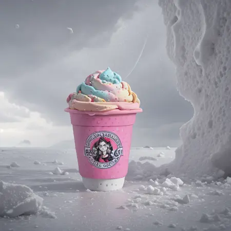 realism oil painting, strawberry ice cream, americano, inside (( sugar cone ))飲める液体用の例: