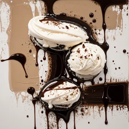 dignified, realism oil painting, licorice, chocolate coins, chocolate covered espresso beans, toffee chocolateアイスクリーム_アート志向用の例: