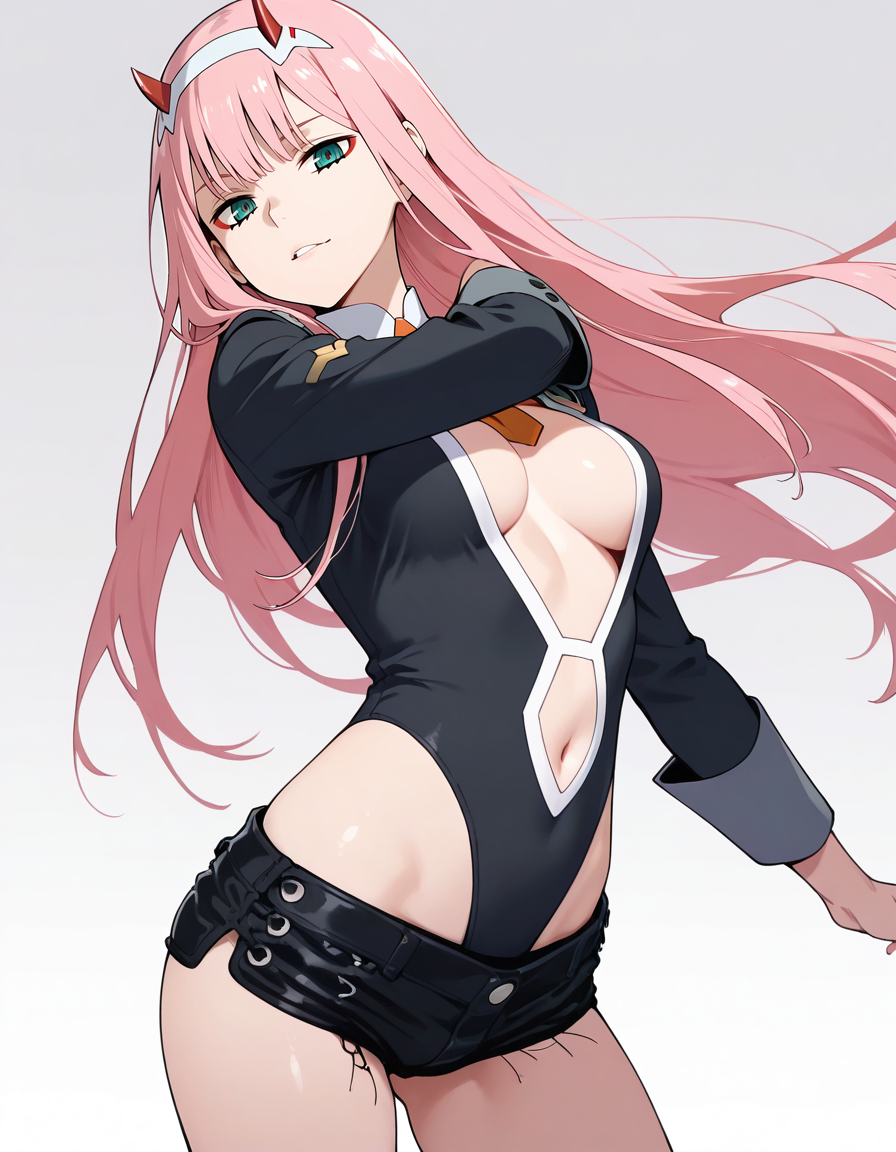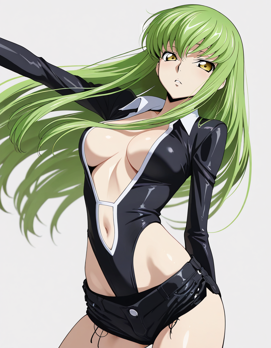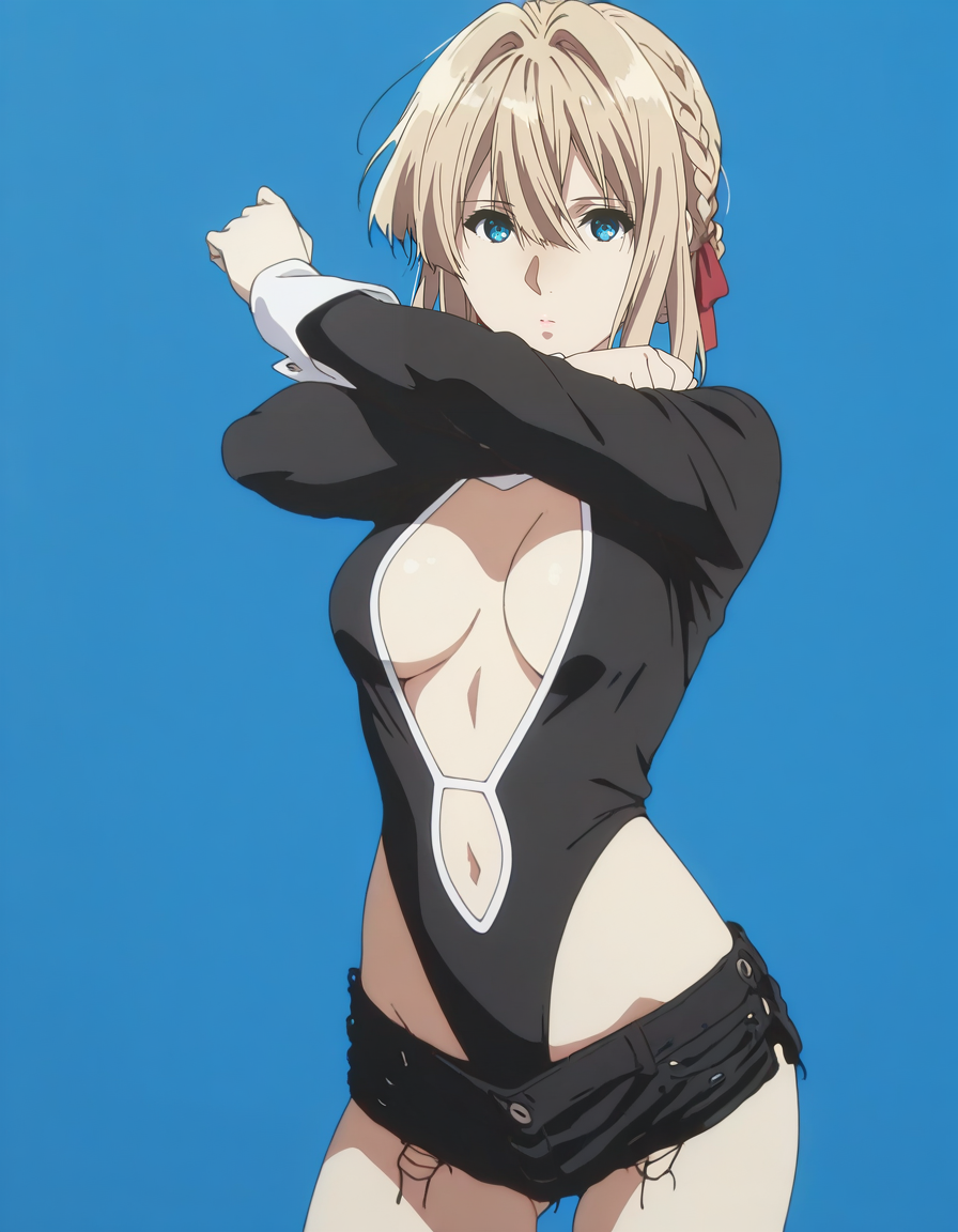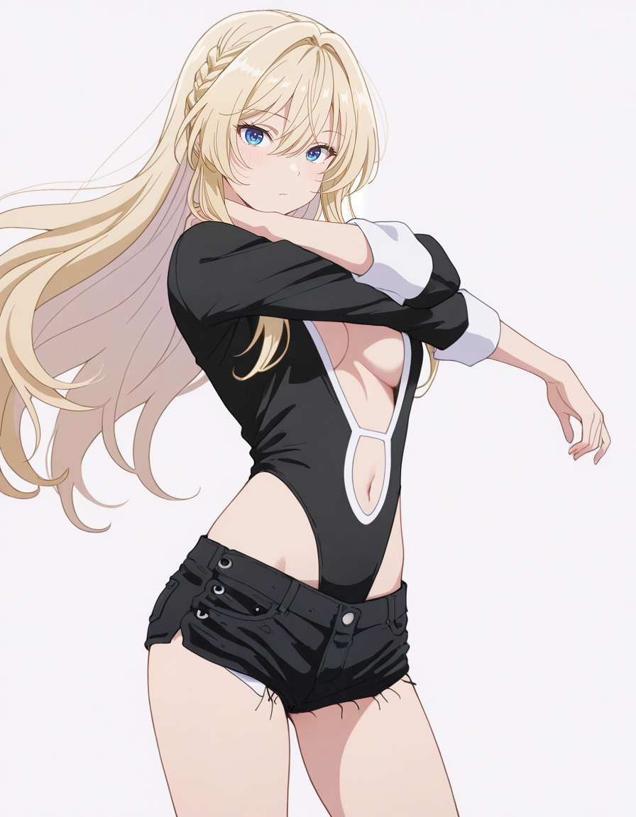 mai_bj_leotard,black_leotard,center_opening,short_shorts,black_shorts