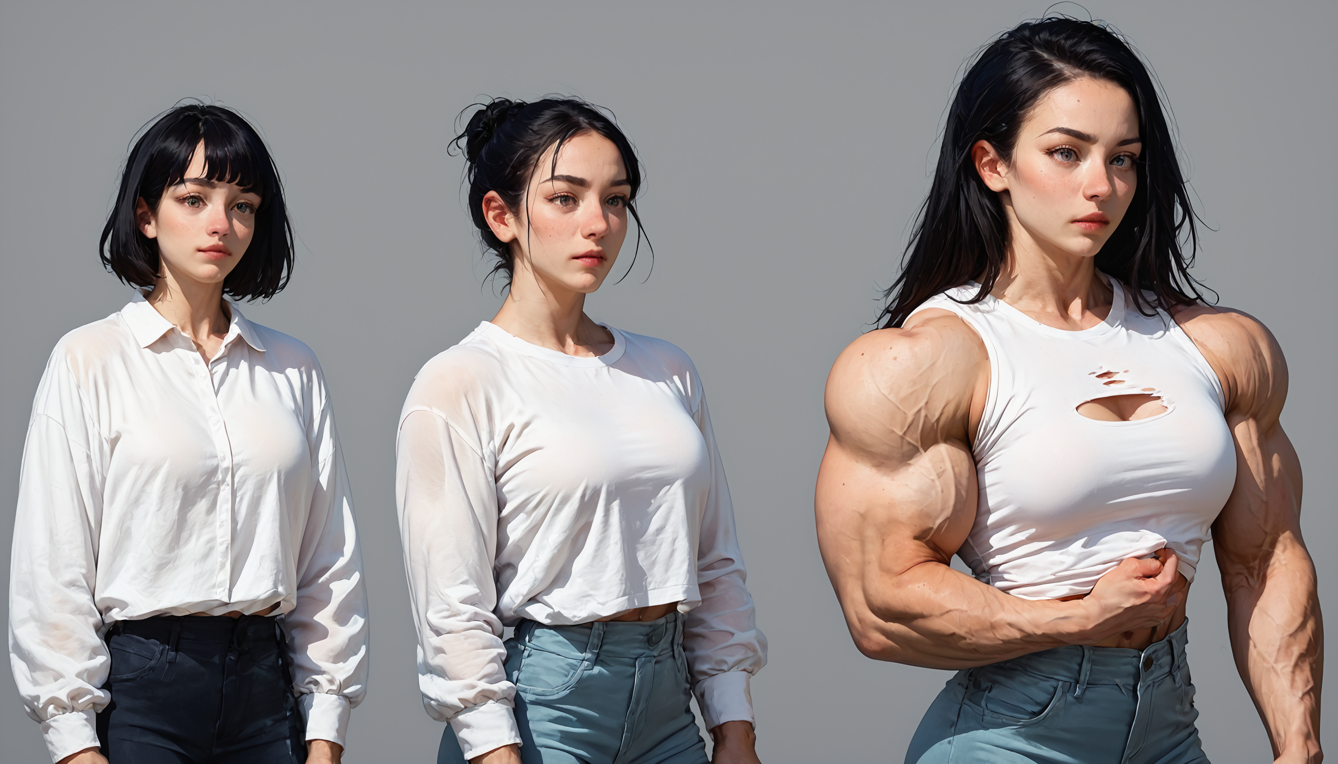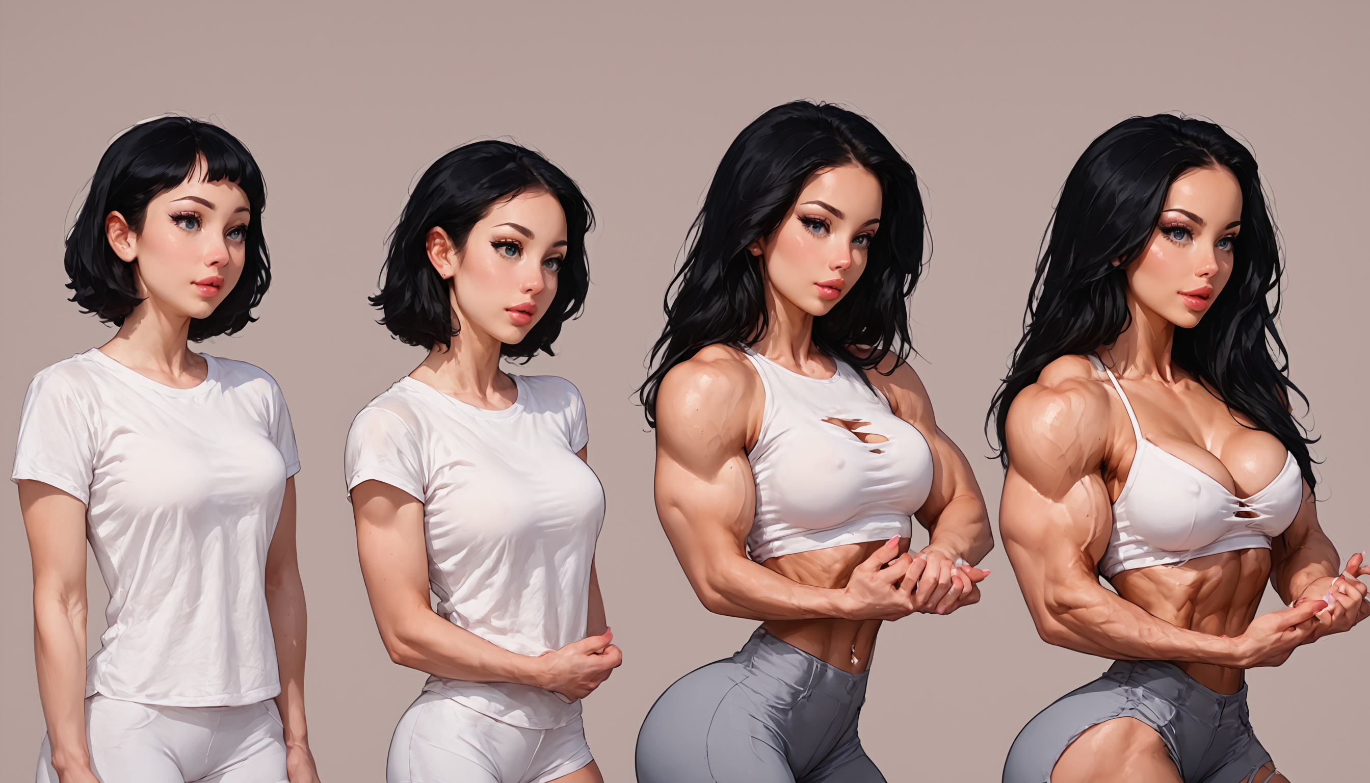 Female Muscle Growth Bimbo - Transformation Sequence - Stable Diffusion XL