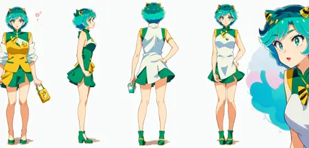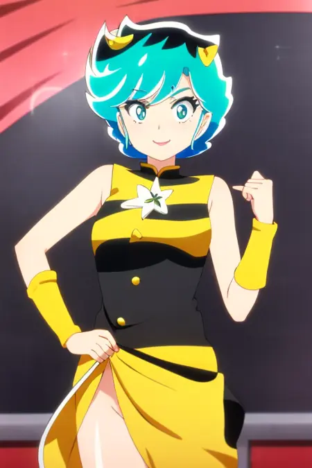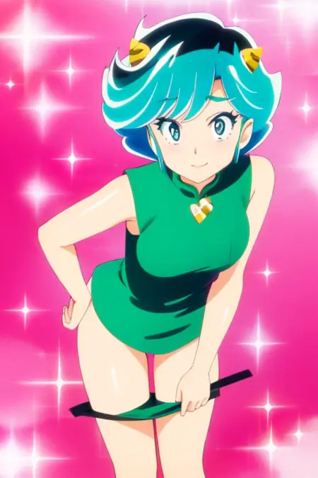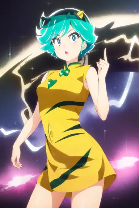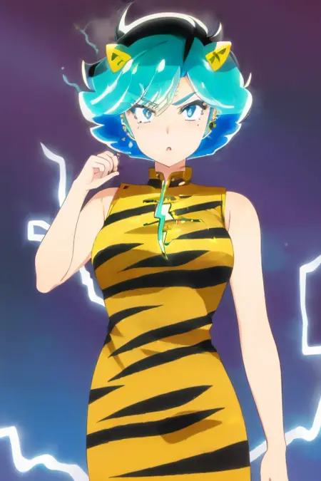最高の効果を得るには、ウェイトを 1 から 0.6 に設定し、プロンプトには「ショートカット」「うる星やつら」「ラムの母」「赤い口紅」「(おにの角:0.5)」、ネガティブ プロンプトには「3つの角」「非対称な角」を使用してください。