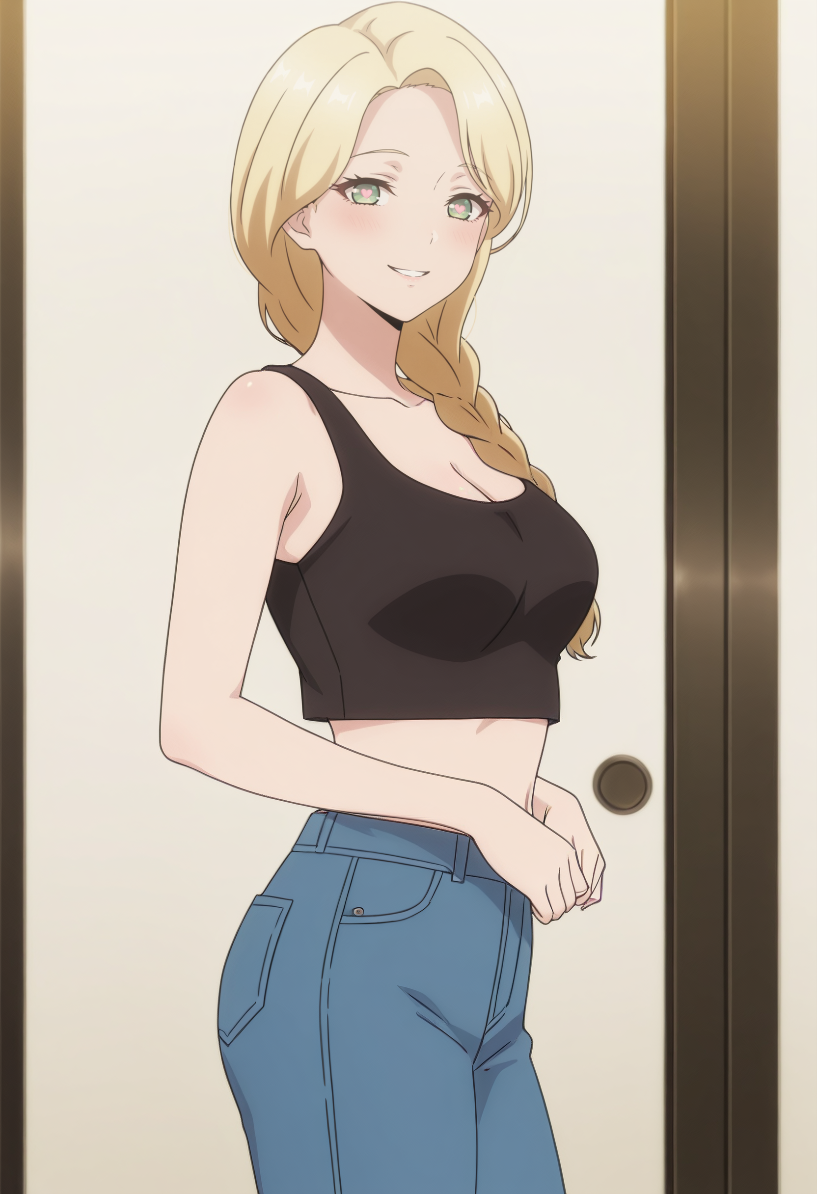DL2Grams、前髪、金髪、編み込み、緑の目、肩にかかる髪、ロングヘア、一本の編み込み