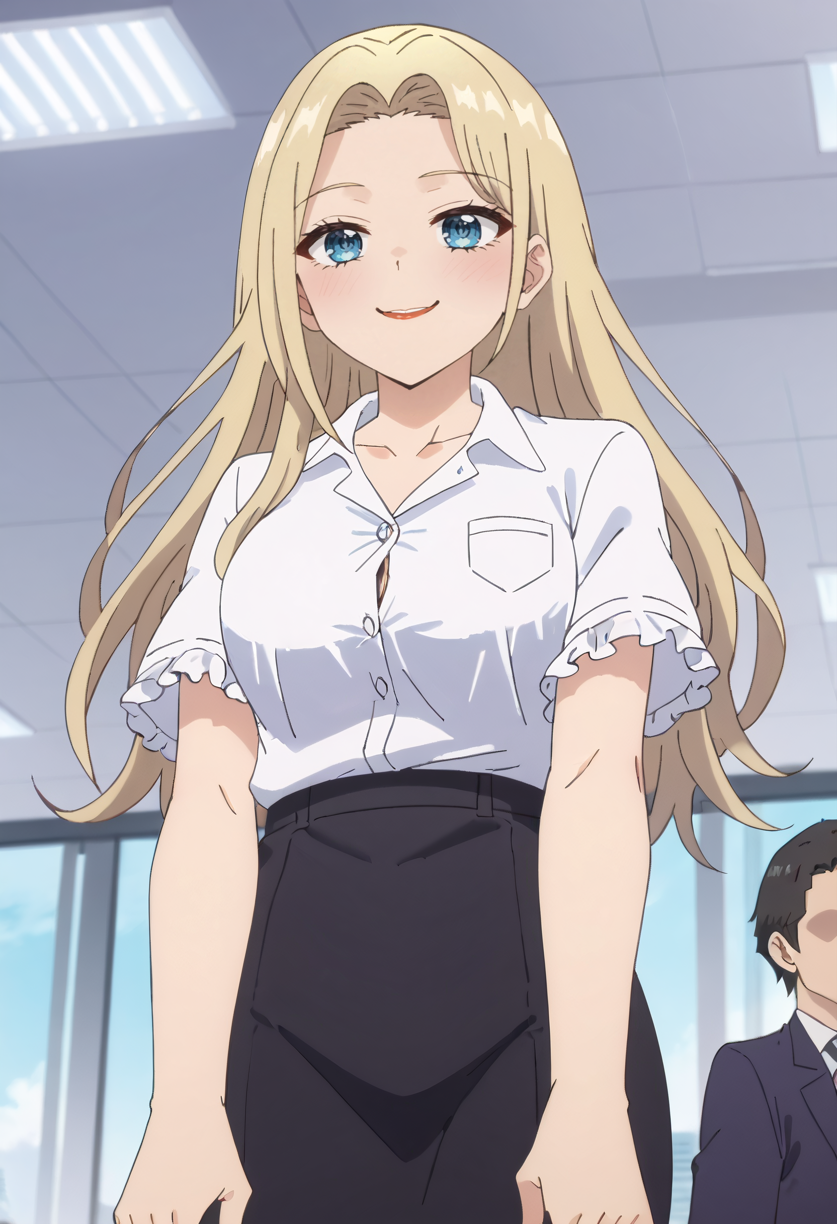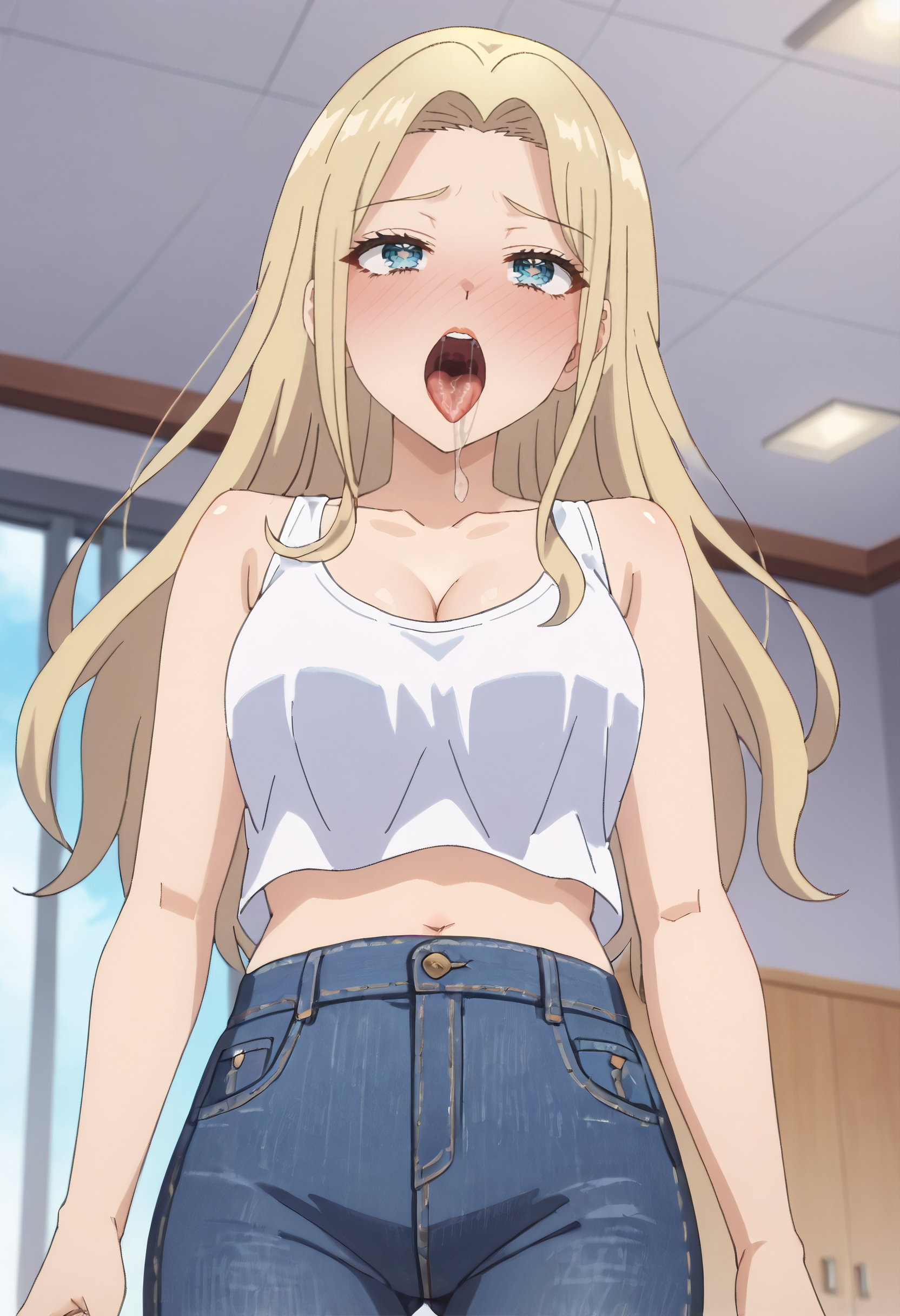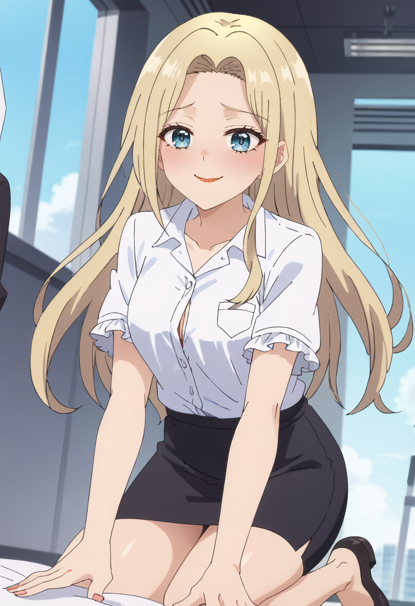 DNYMao, 금발, 긴 머리, 파란 눈, 앞머리,