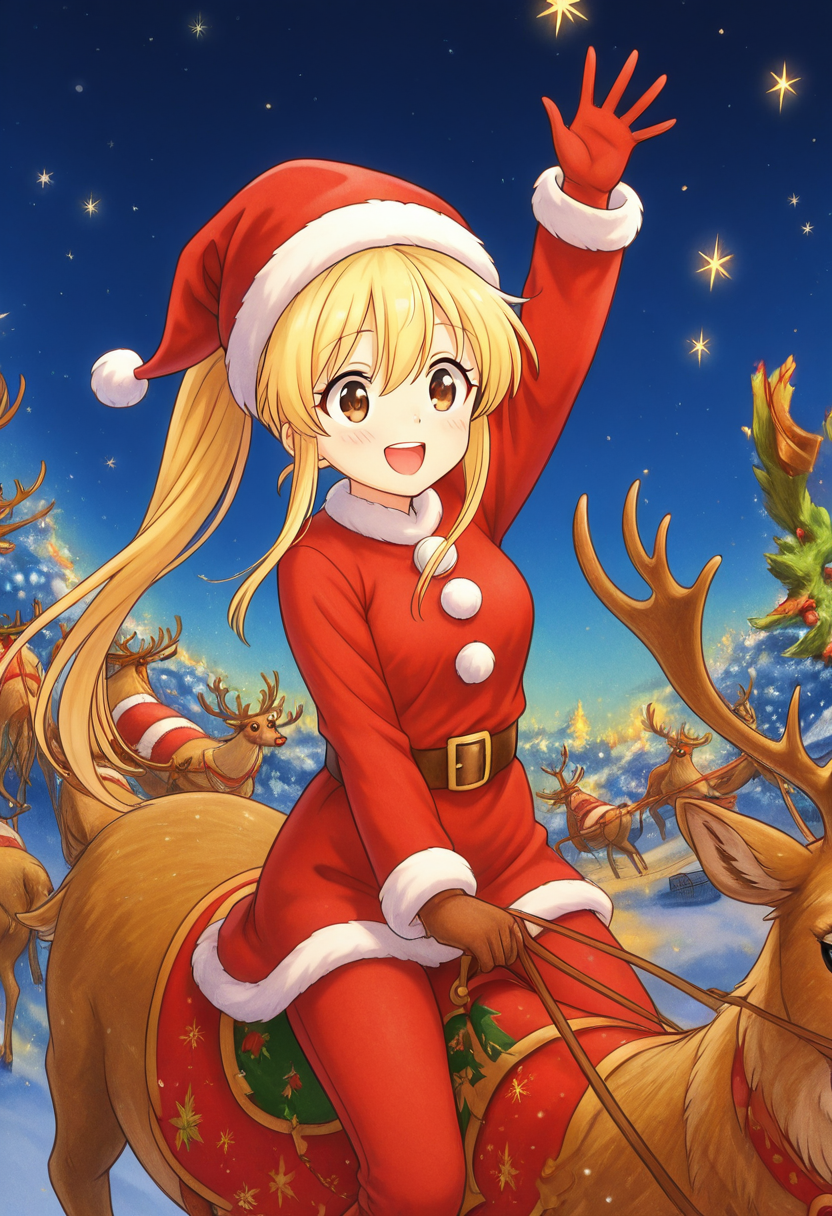 免责声明:このLoRAはあまり優れていないです。たまに素晴らしい結果が出ますが、ほとんどの場合、サンタのソリの「解剖学的」な構造がおかしくなります。