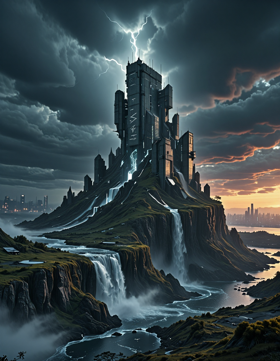 • T10, 풍경, 산, 파도, 바위, 나무, 식물, 이끼, 거친 바다, 폭포, 폐허, 일몰, 파랑, 주황, 노랑, 갈색