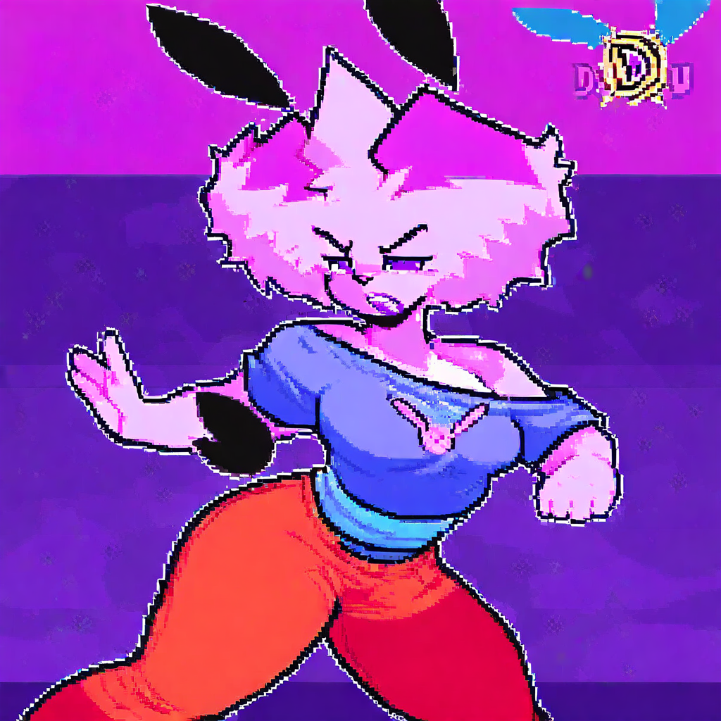 Ditchu_li, anthro, furry, female, colored skin, pink hair, breasts, ears, tail, pixel art, pixel