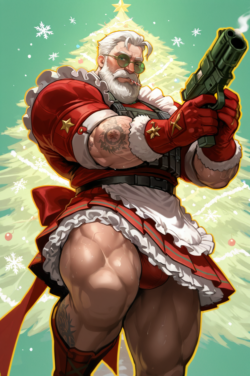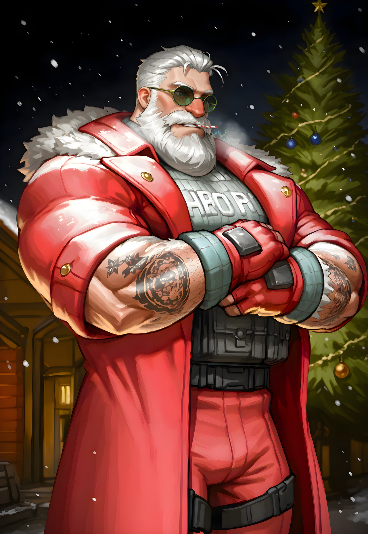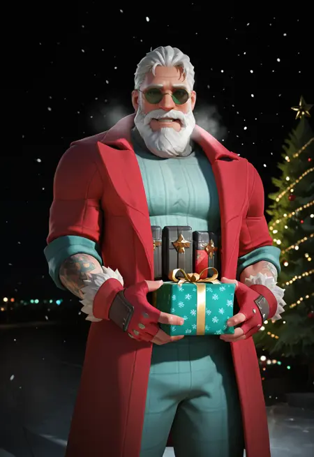 lt_winter_fn, 1boy, solo, old, facial hair, green_sunglasses, round eyewear, red_coat, fingerless gloves, tattoo,