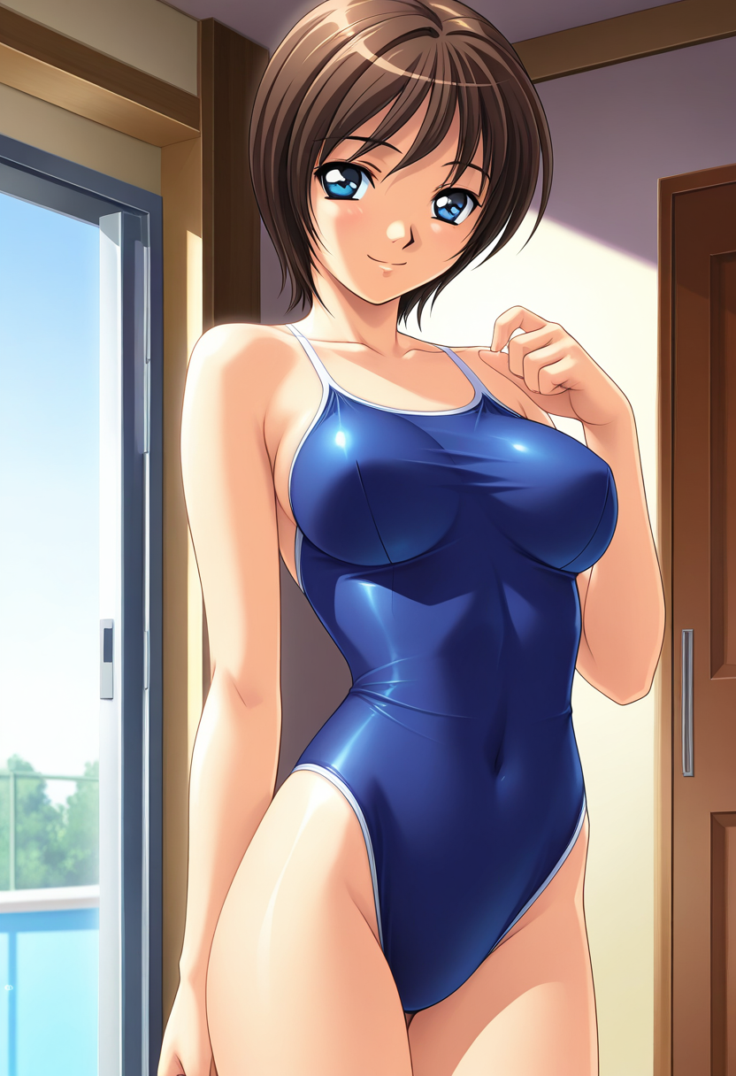 _ありえない水着, コンペティション用学校水着, 青いワンピース水着, ハイレグ水着, _