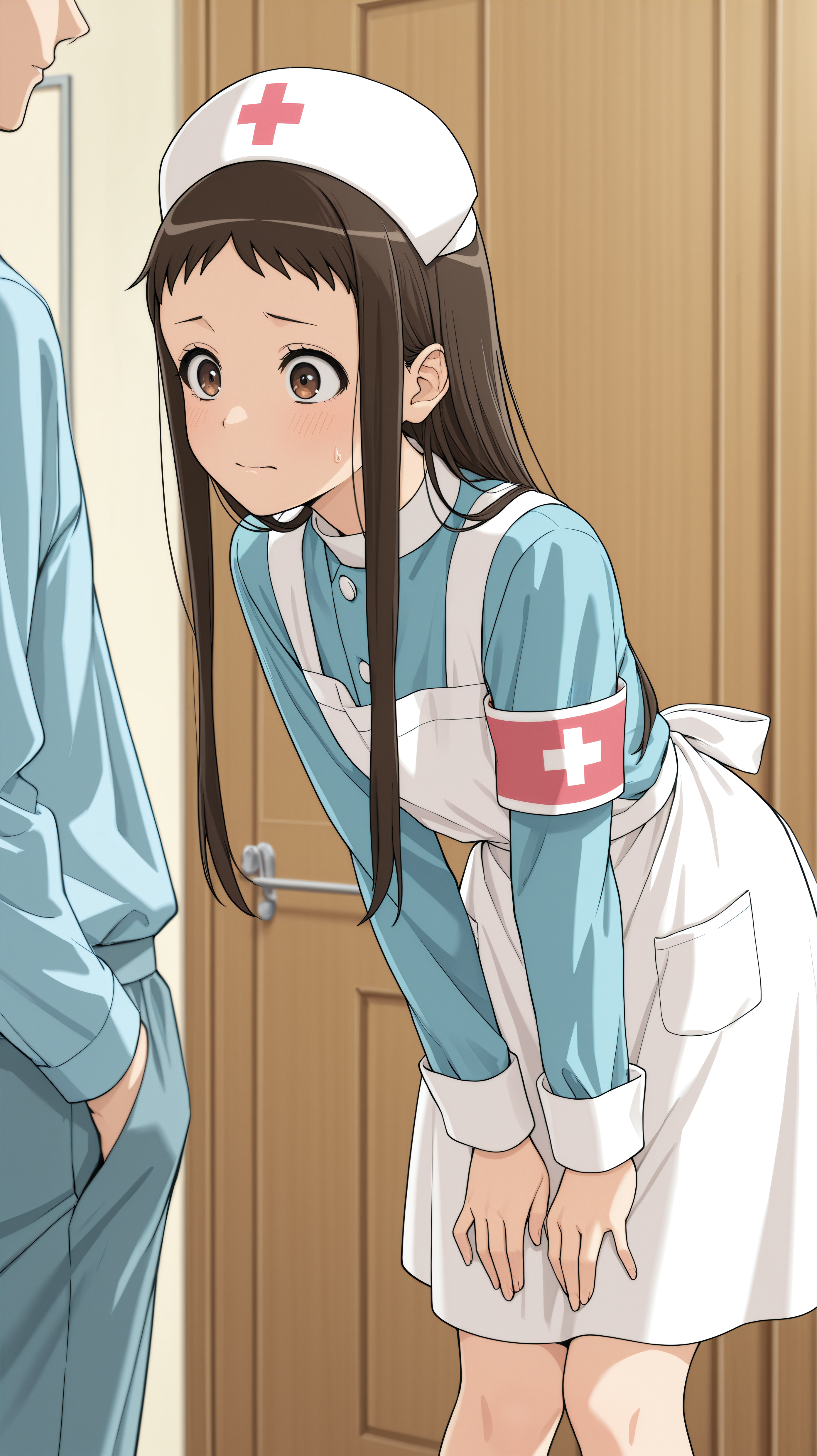 koyomi_mishima, short girl, long hair, brown hair, brown eyes, short bangs, serafuku, white sailor collar, school uniform, white neckerchief, black shirt, long sleeves, black skirt, long skirt,