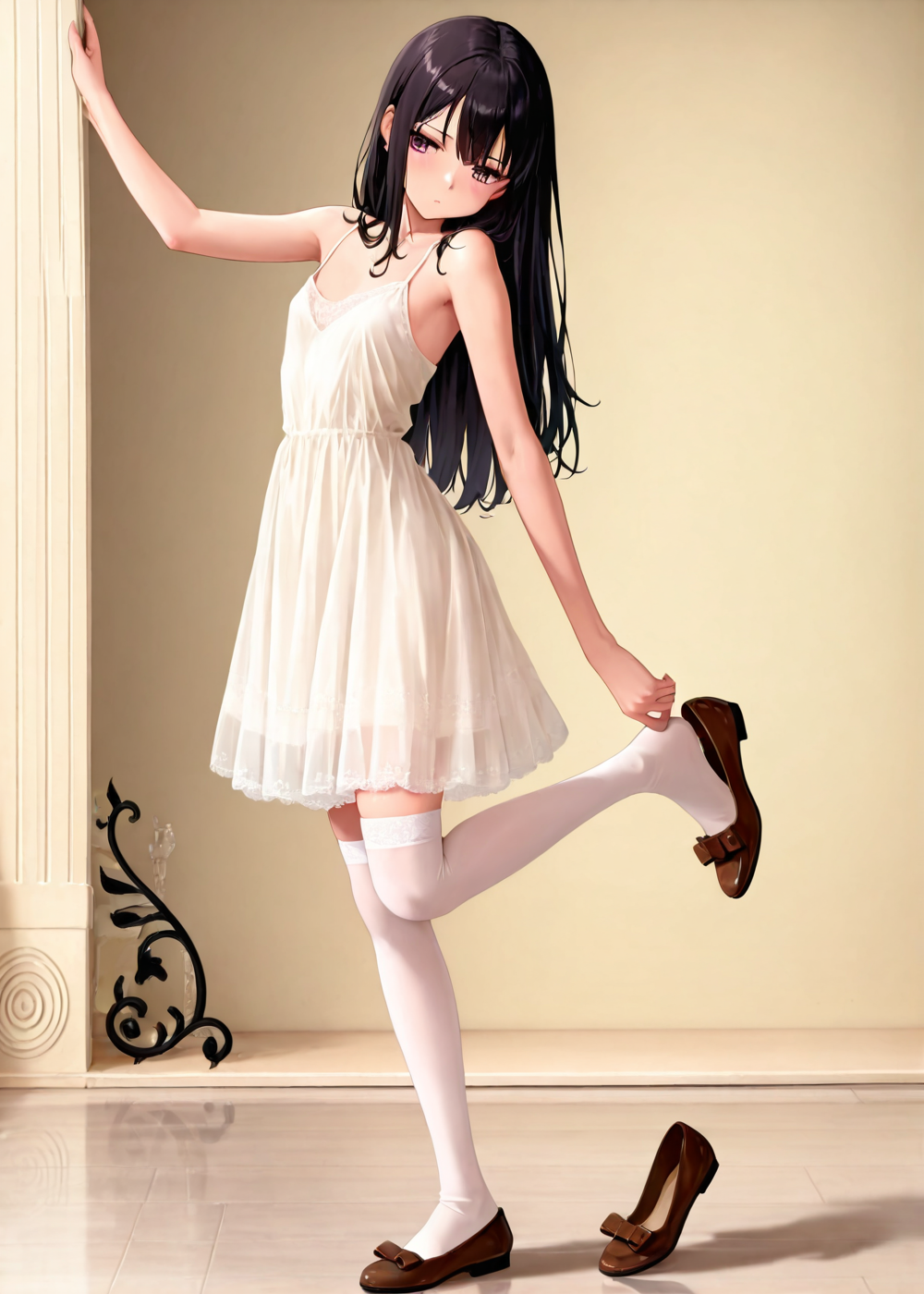 SDXL Lora for generating women flat shoes with a bow on it. It is recommanded to set as 0.8-1.2 (set as 1 is commonly ok, but please adjust weight if necessary) and use SDXL based models. Color can be changed when switching trigger words. The original training files are photos so use words like 'anime', 'anime_screenshots' or art style lora to generate anime style pictures.