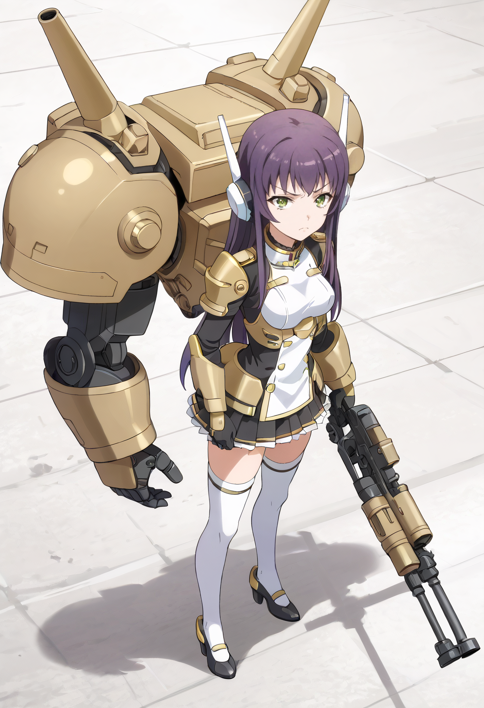 KyokaMecha、メカ、メカ娘、機械、砲、ヘッドセット、武器、SF、銃、軍事、タレット、手袋、シンソックス、ヘッドギア、ライフル、スカート、ロボット、軍用車両、アーマー、ユニフォーム、白い脚部装着、