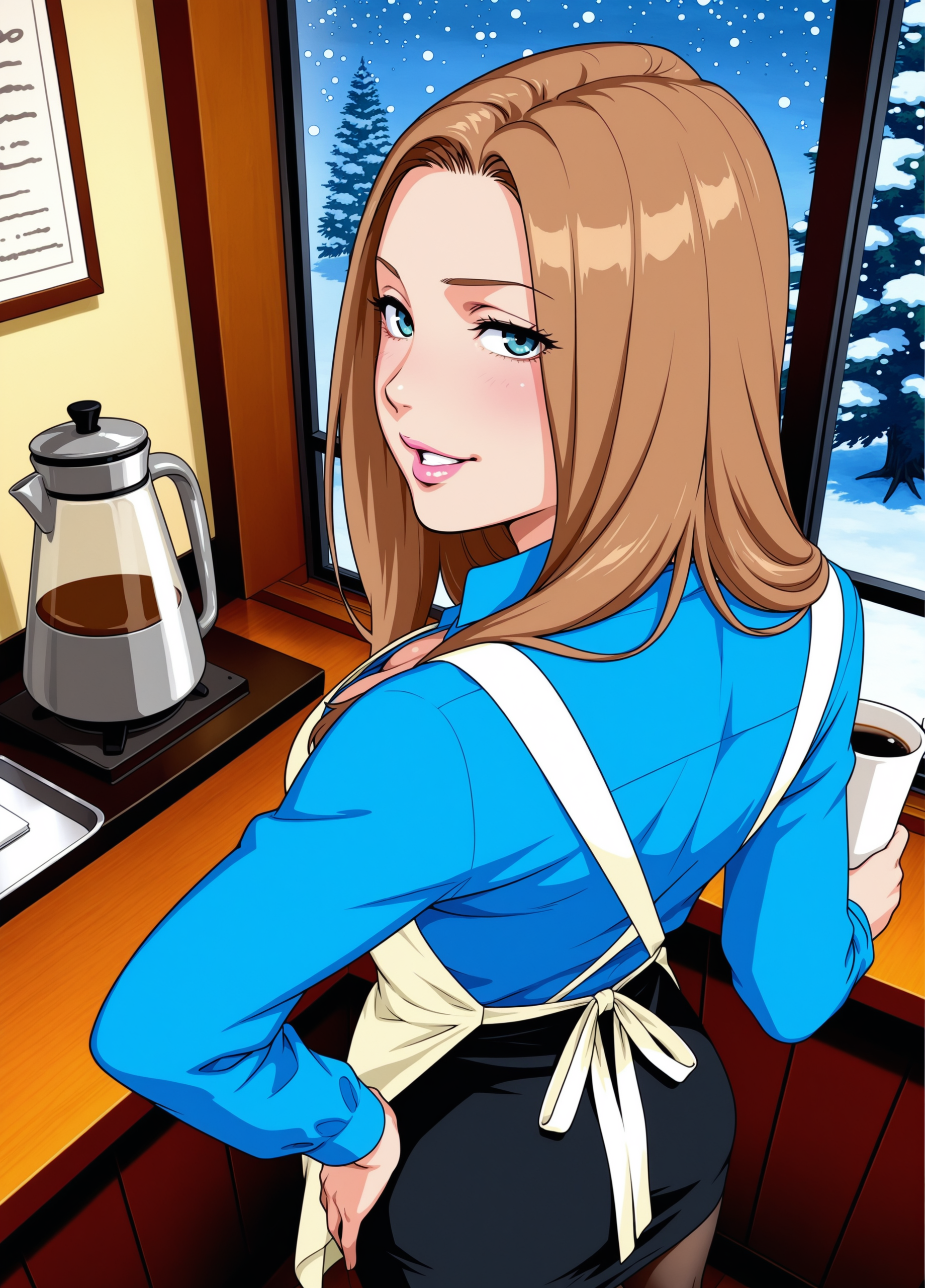 Rachel_Green, ブルネット, 茶色の髪, 美しい女性, 青い目, 前髪分け, 長い髪, 唇, 公式アート, コミックブックの色塗り, フレンドズのアートスタイル, 中程度の胸