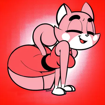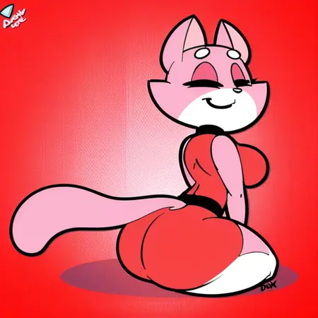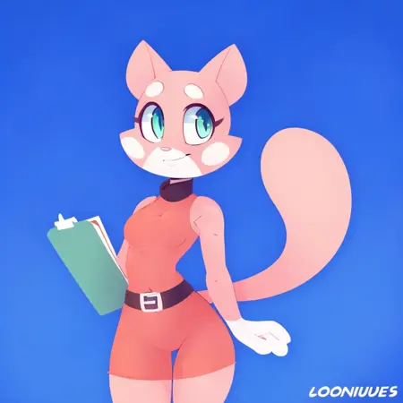 프롬프트 강화어: furry_female, felid, pink_eyes, small_height, belt, pink_fur