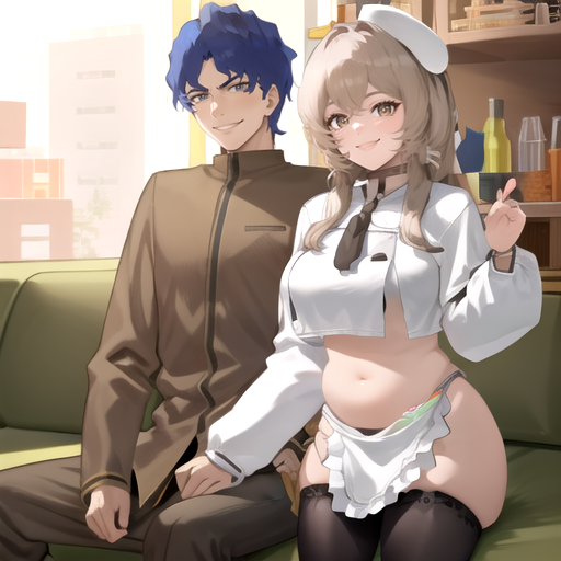ShinjiBready, a man and a woman, hetero, standing, smile, cowboy shot