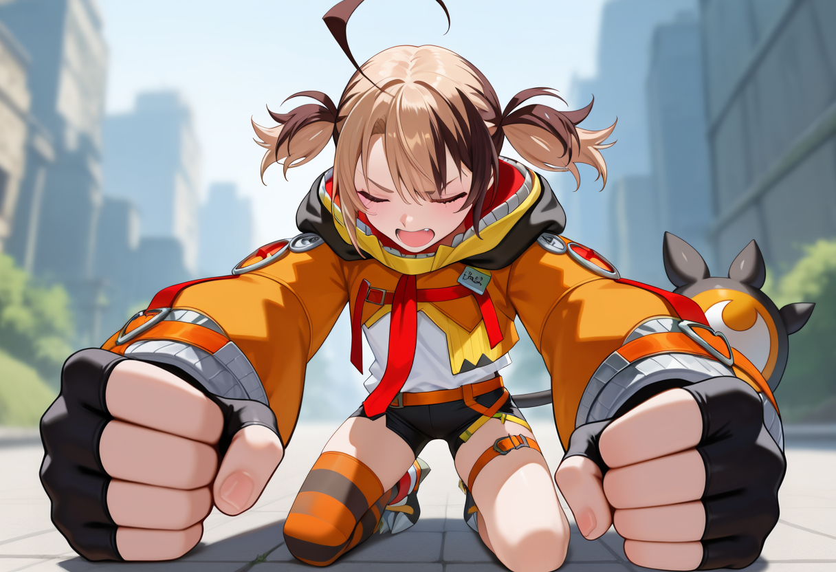 トリガー語: 片膝をついている、握りこぶし、開いた口、閉じた目