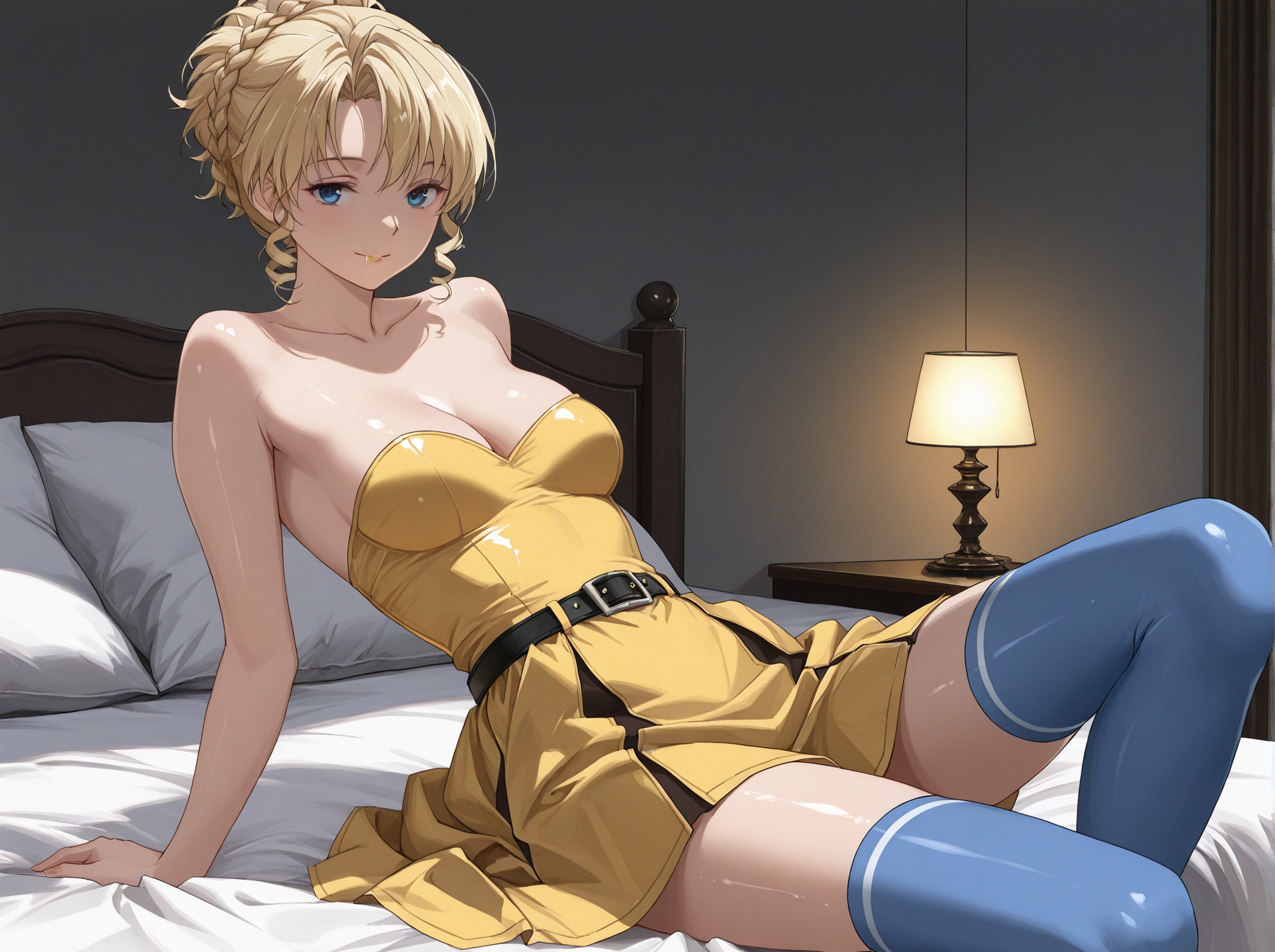 キャラクター:(PacificaSP、青い目、金髪、髪を結っている、編み込み、カール)