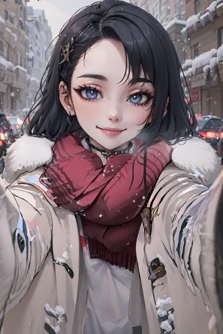 가중치는 0.7에서 1까지 조정할 수 있습니다. 1을 추천합니다. 거의 모든 스타일, 모든 캐릭터 및 사진처럼 사실적인 모델과 호환됩니다. 겨울 옷은 포함되어 있으므로 이 밈/개념에 충실합니다. 그래도 _red scarf, winter clothes_가 필요할 수 있습니다.