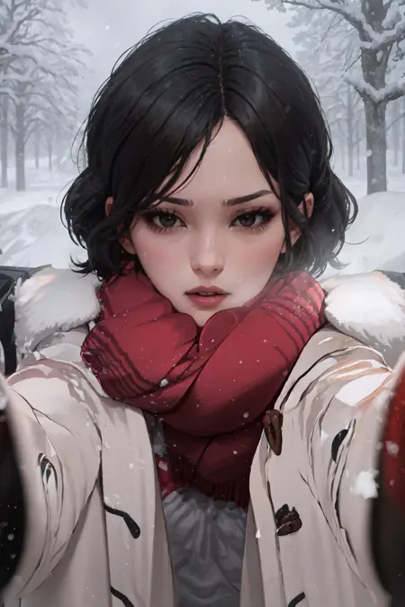 가중치는 0.8에서 1.2까지 조정할 수 있습니다. 1을 추천합니다. 거의 모든 스타일, 모든 캐릭터 및 사진처럼 사실적인 모델과 호환됩니다. 겨울 옷은 포함되어 있으므로 이 밈/개념에 충실합니다. 그래도 _red scarf, winter clothes_가 필요할 수 있습니다.