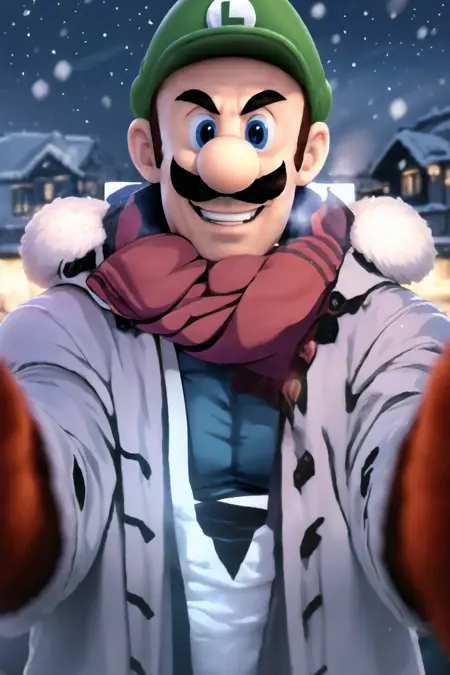 权重可从0.8调整至1.2,我推荐设为1。适用于几乎所有风格、角色和写实模型。冬季服装已内置,确保忠实还原该表情包/概念。仍可能需要添加red scarf, winter clothes。