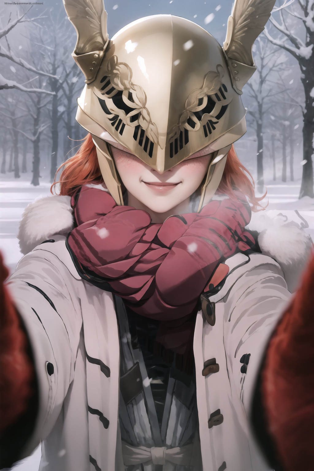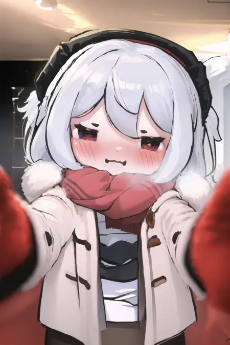 权重可从0.7调整至1,我推荐设为1。适用于几乎所有风格、角色和写实模型。冬季服装已内置,确保忠实还原该表情包/概念。仍可能需要添加red scarf, winter clothes。