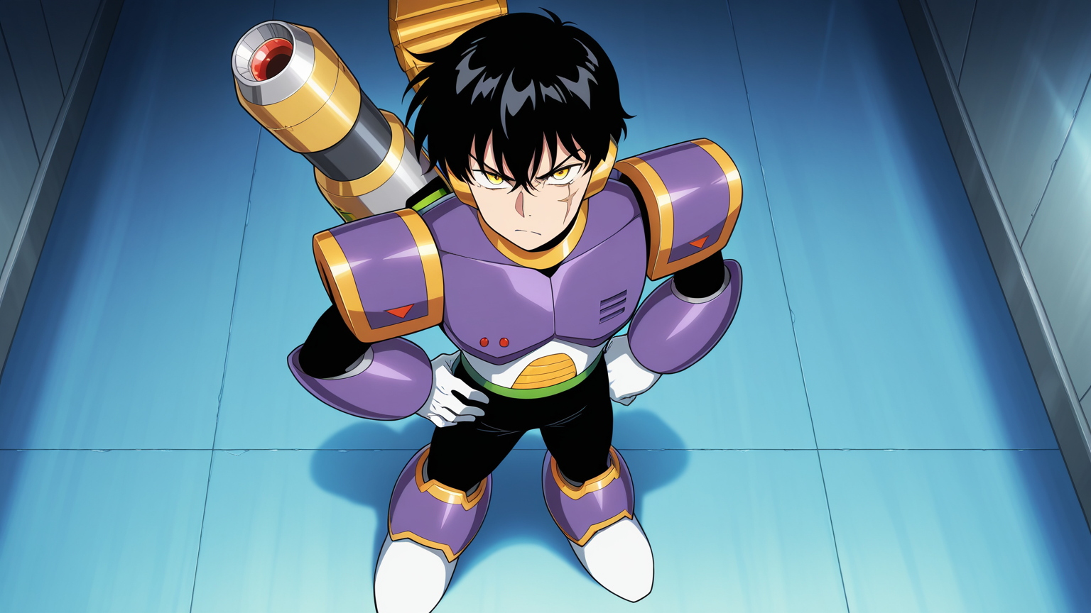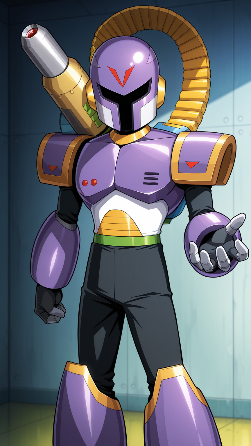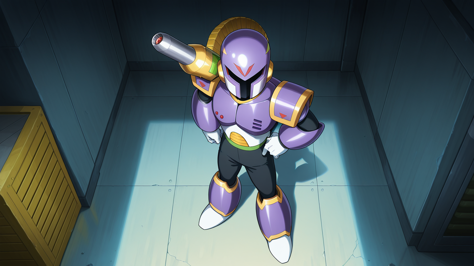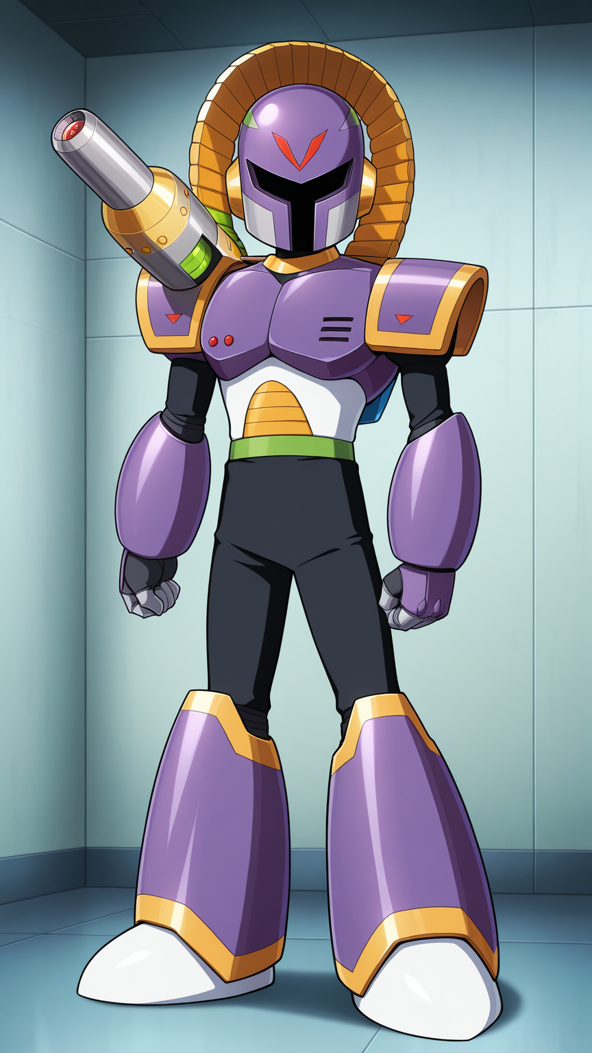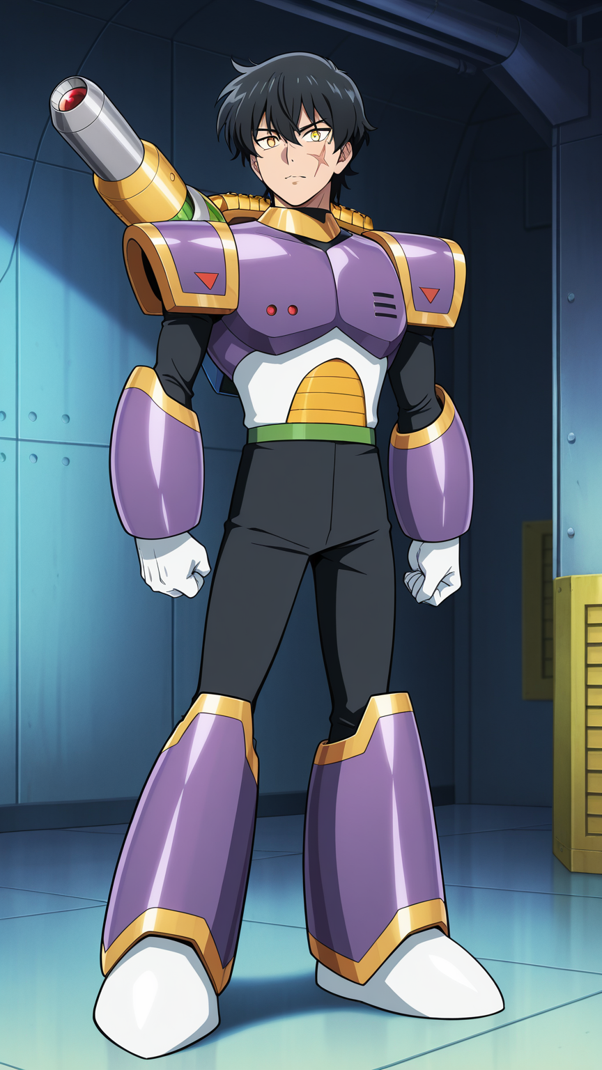 Vile, Reploid, Purple Armour, Purple Helmet, Shoulder Cannon, Black Bodysuit, White Gloves, white boots