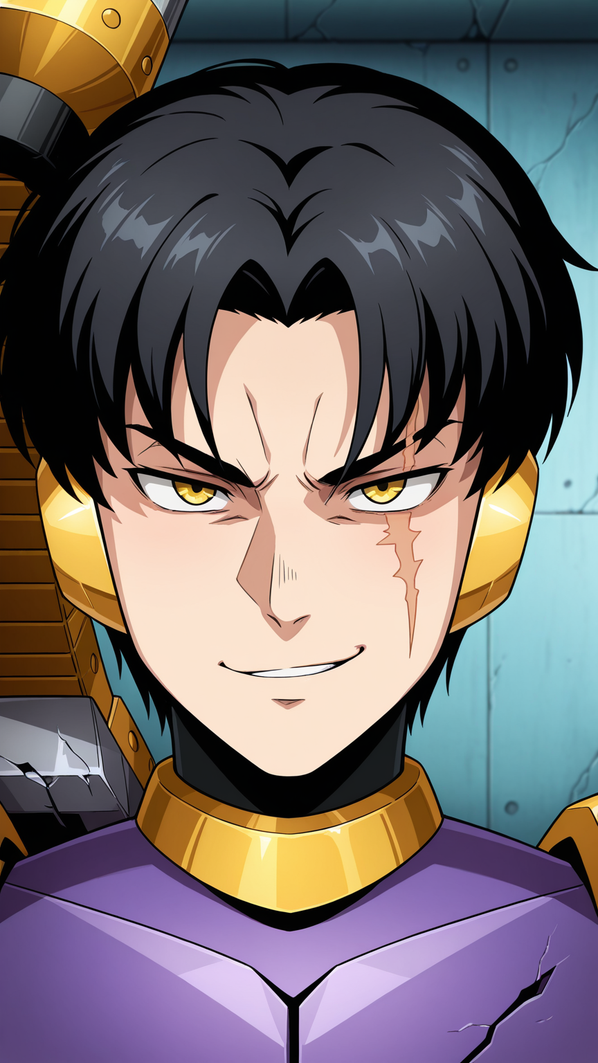 '인간 얼굴'을 위해: '헬멧' 제거, '로봇 귀', '얼굴 흉터', 머리카락 색상 추가.