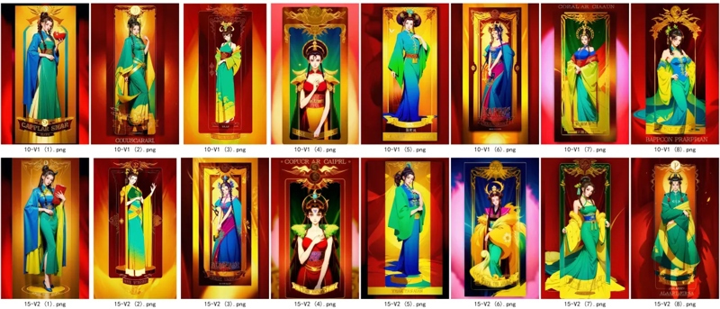 V1是训练出的第15丹,其效果更加扁平,更偏向平面化。