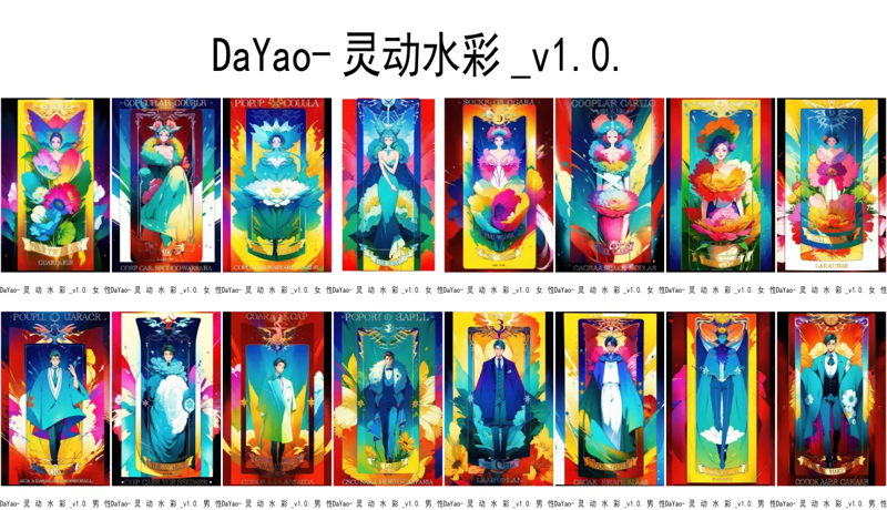 该LoRA不同于之前的魔卡抽卡机,其画风偏向扁平,但与一些基础模型搭配使用时效果依然惊艳。