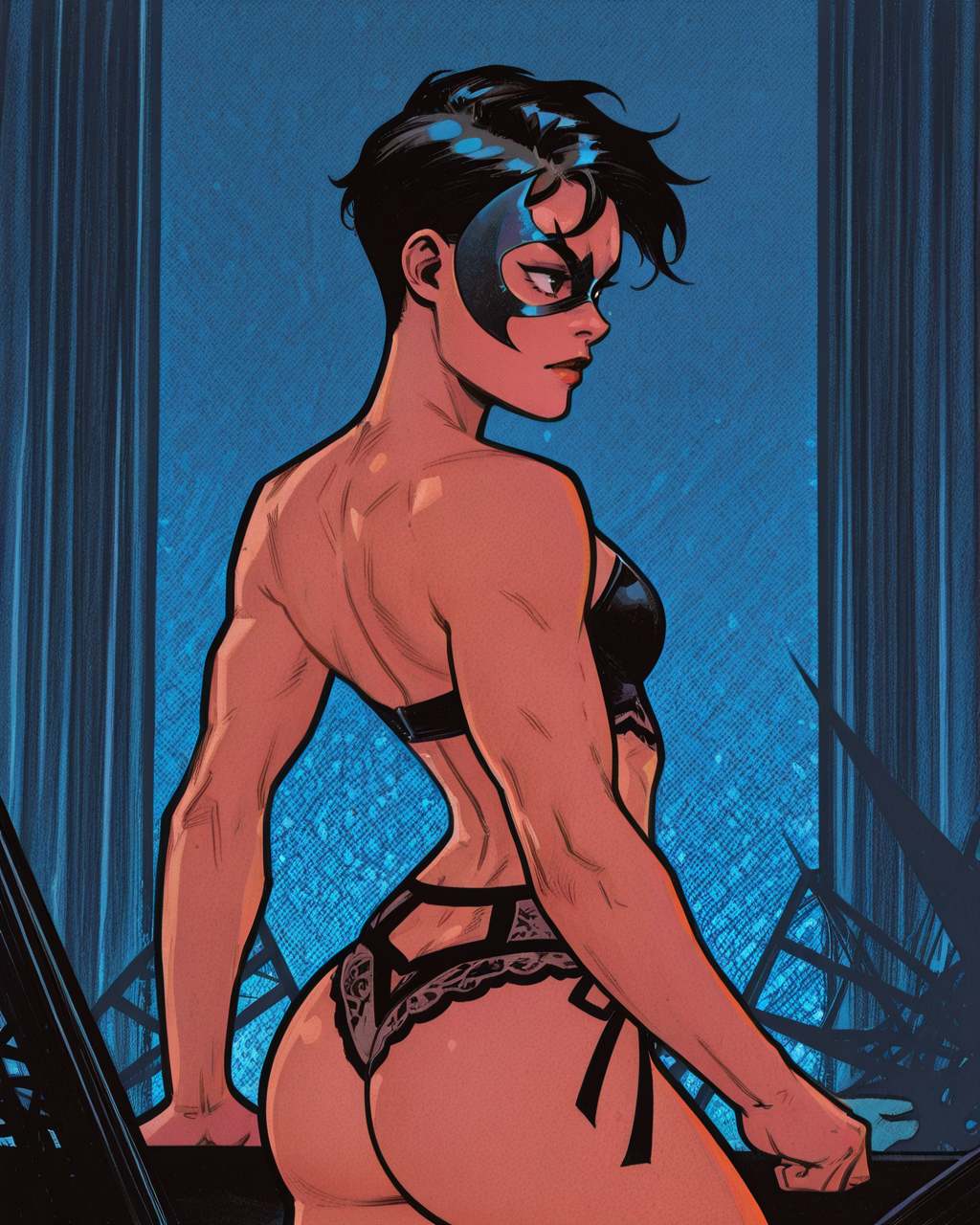 これは、彼の『バーズ・オブ・プリイ』での作風をもとに学習され、特徴的な色使いを再現しようと試みました。