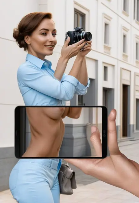 This LoRA puts you in a world where you possess a magic phone that shows you the people around you without their clothing.