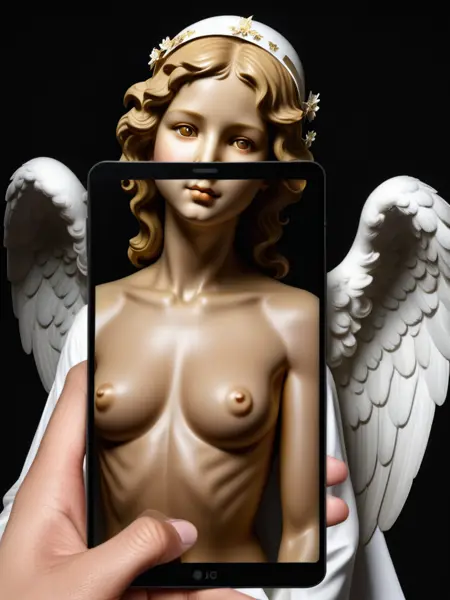 This LoRA puts you in a world where you possess a magic phone that shows you the people around you without their clothing.