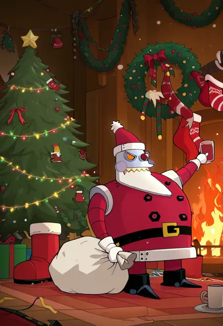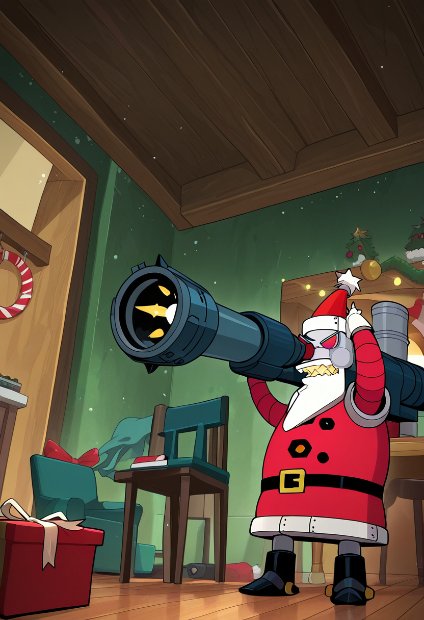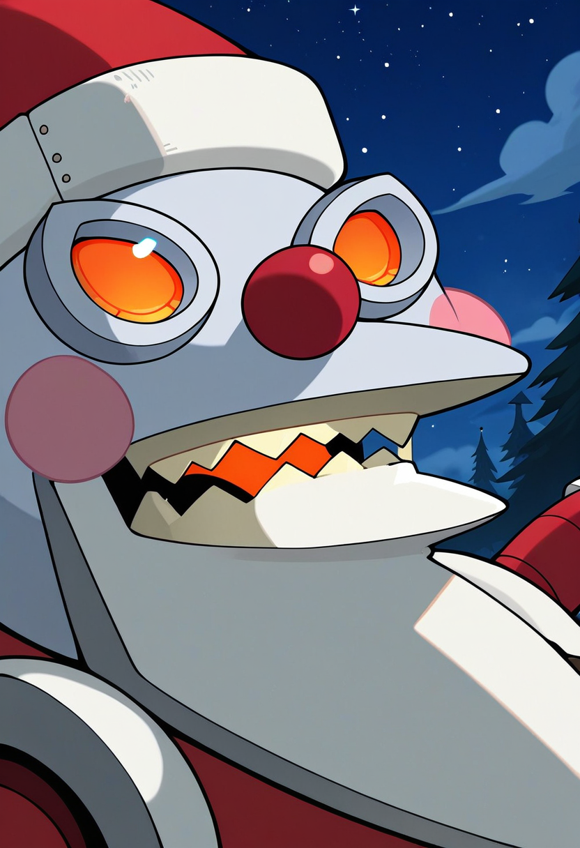 트리거 단어: robosanta, robot, 1boy, fat, red eyes, sharp teeth, beard, red nose