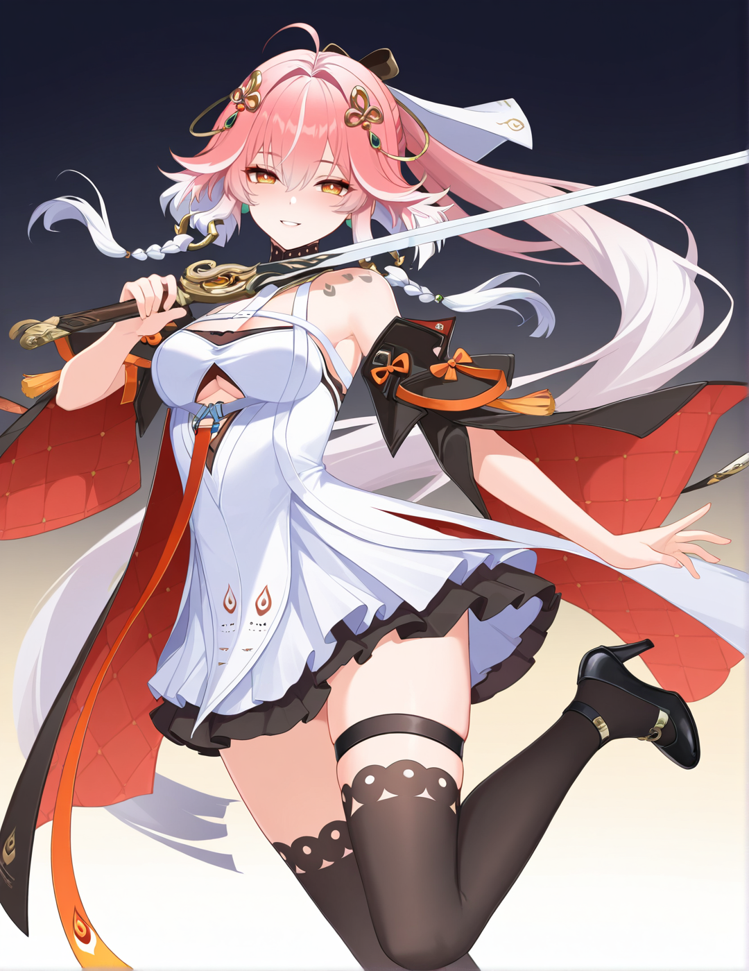 | トレーニングワード | changli, 1girl, solo, long hair, pink hair, yellow eyes, multicolored hair, hair ornament, white dress, sleeveless dress, large breasts, yellow eyes, pink hair, multicolored hair, black thighhighs, twin braids, thigh strap, short dress, cleavage cutout, armlet, anklet, arm strap, high heels コピーしました! Changli, 1girl, solo, hair ornament, cleavage, jewelry, bare shoulders, very long hair, medium breasts, yellow eyes, white hair, pink hair, ponytail, multicolored hair, earrings, black sleeves, detached sleeves, sleeveless, black thighhighs, sword, black footwear, white dress, two-tone hair, high heels, orange eyes, zettai ryouiki, thigh strap, gradient hair, tattoo, short dress, tassel, underboob cutout, black underskirt, black coat コピーしました! |