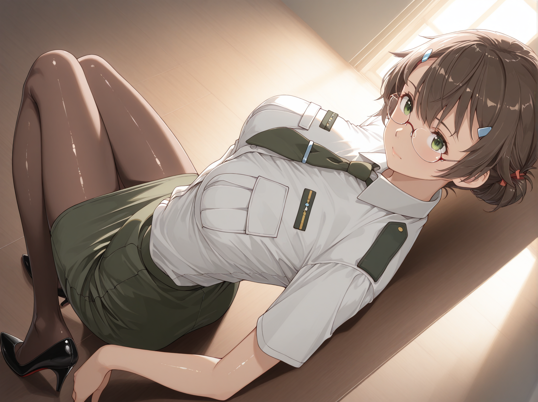 服装:(軍服、ネクタイ、ショートスカート、ペンシルスカート、パンティーハイズ、ハイヒール)