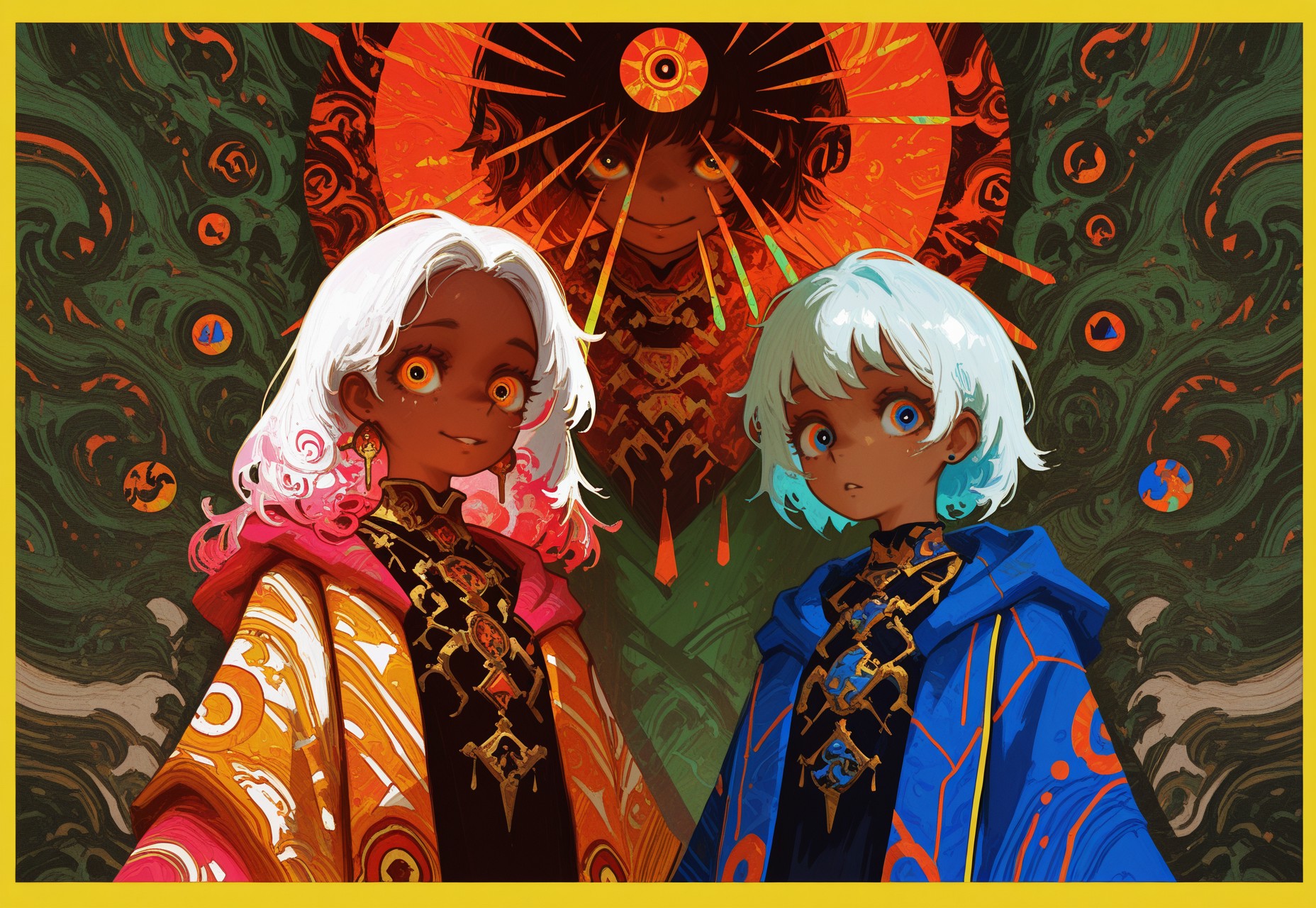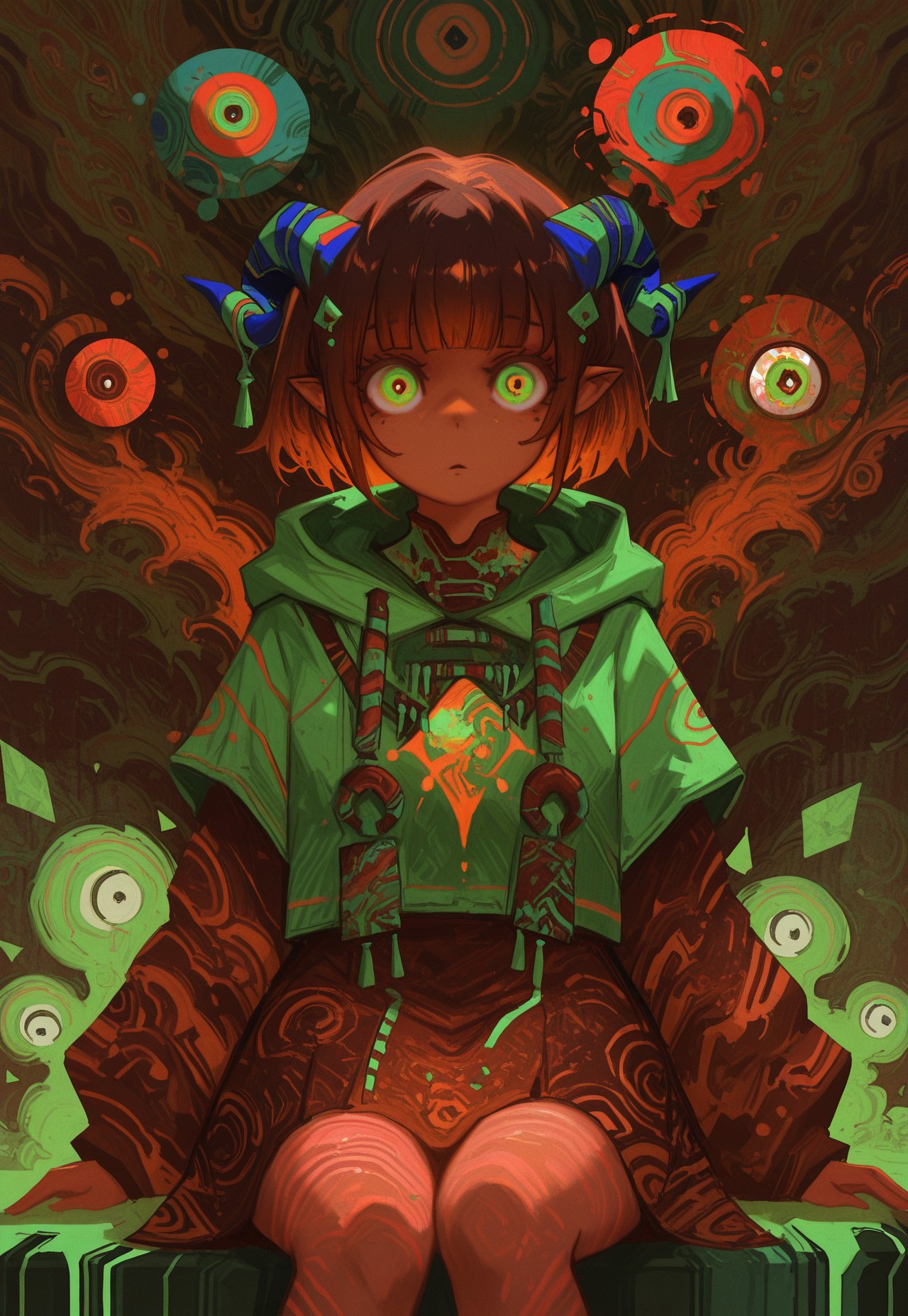 推奨タグ:カラフル、カオス的、抽象的、太い筆致、濃い塗料、高彩度
