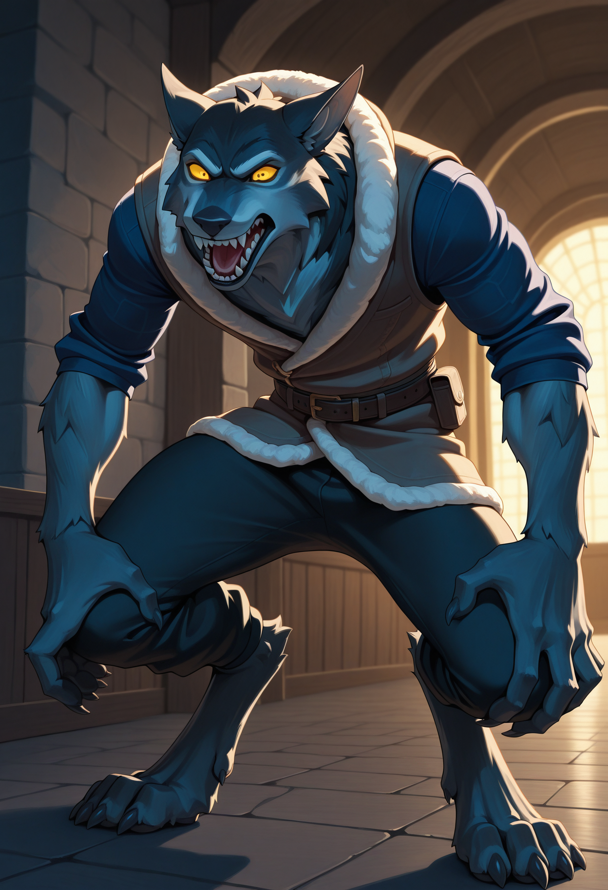 트리거 단어: 1boy, solo, F3rr4n, 워울프, 노란 공막, 노란 눈, 검은 털,