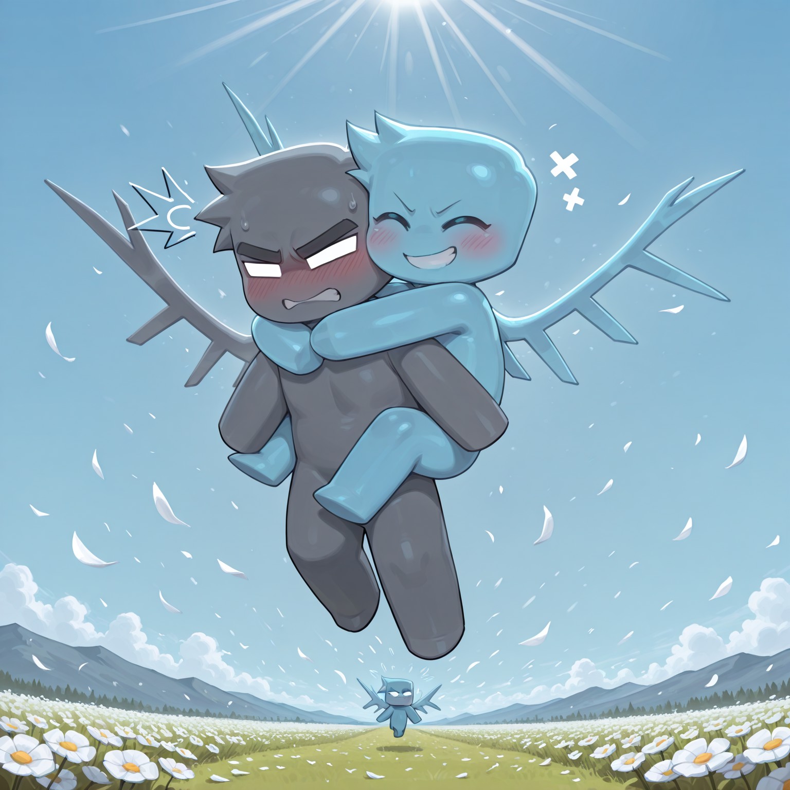 a11ay, blue skin, cyan hair, blank eyes, blue wings, small body, creature