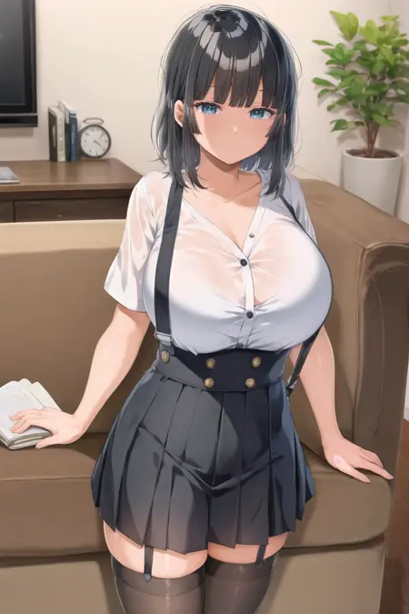 オプションのガイドワード:黒髪、青い目、中くらいの髪、大きな胸