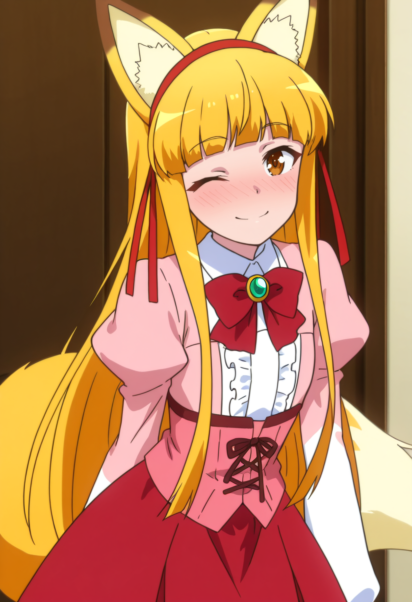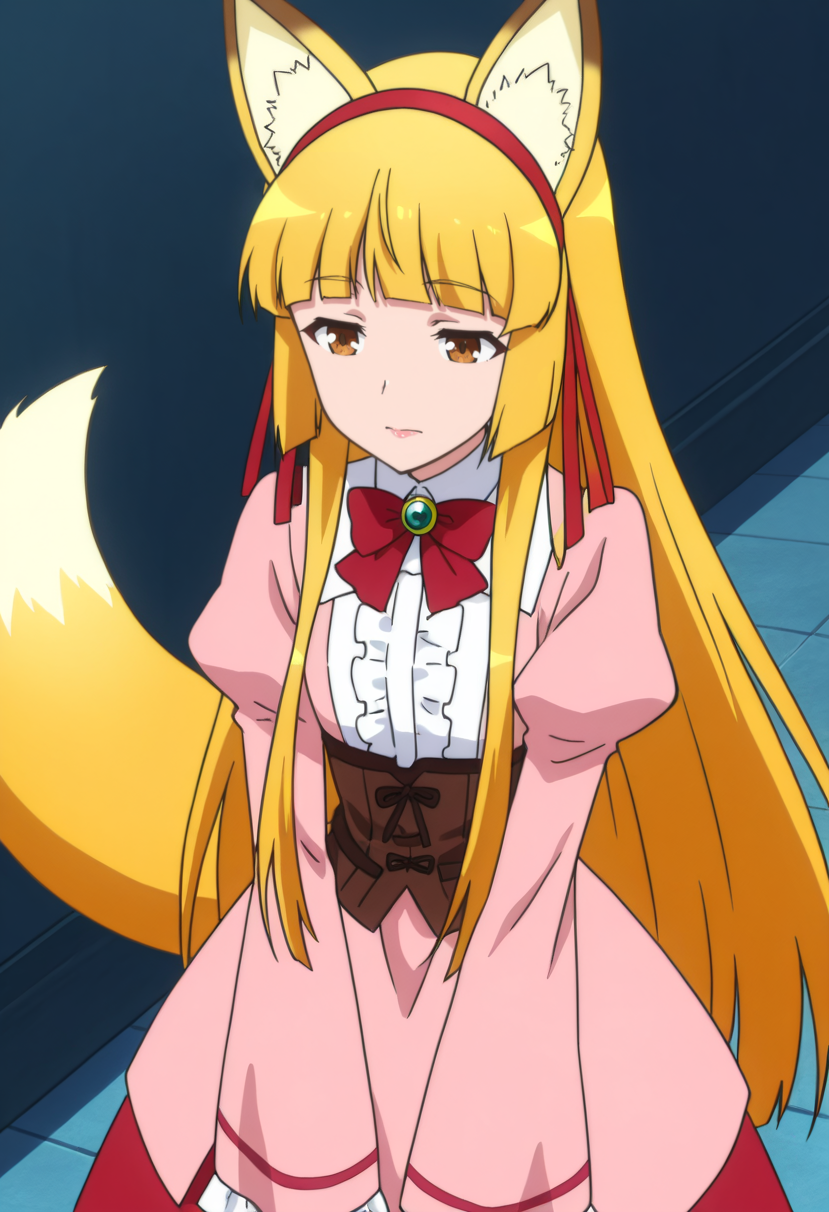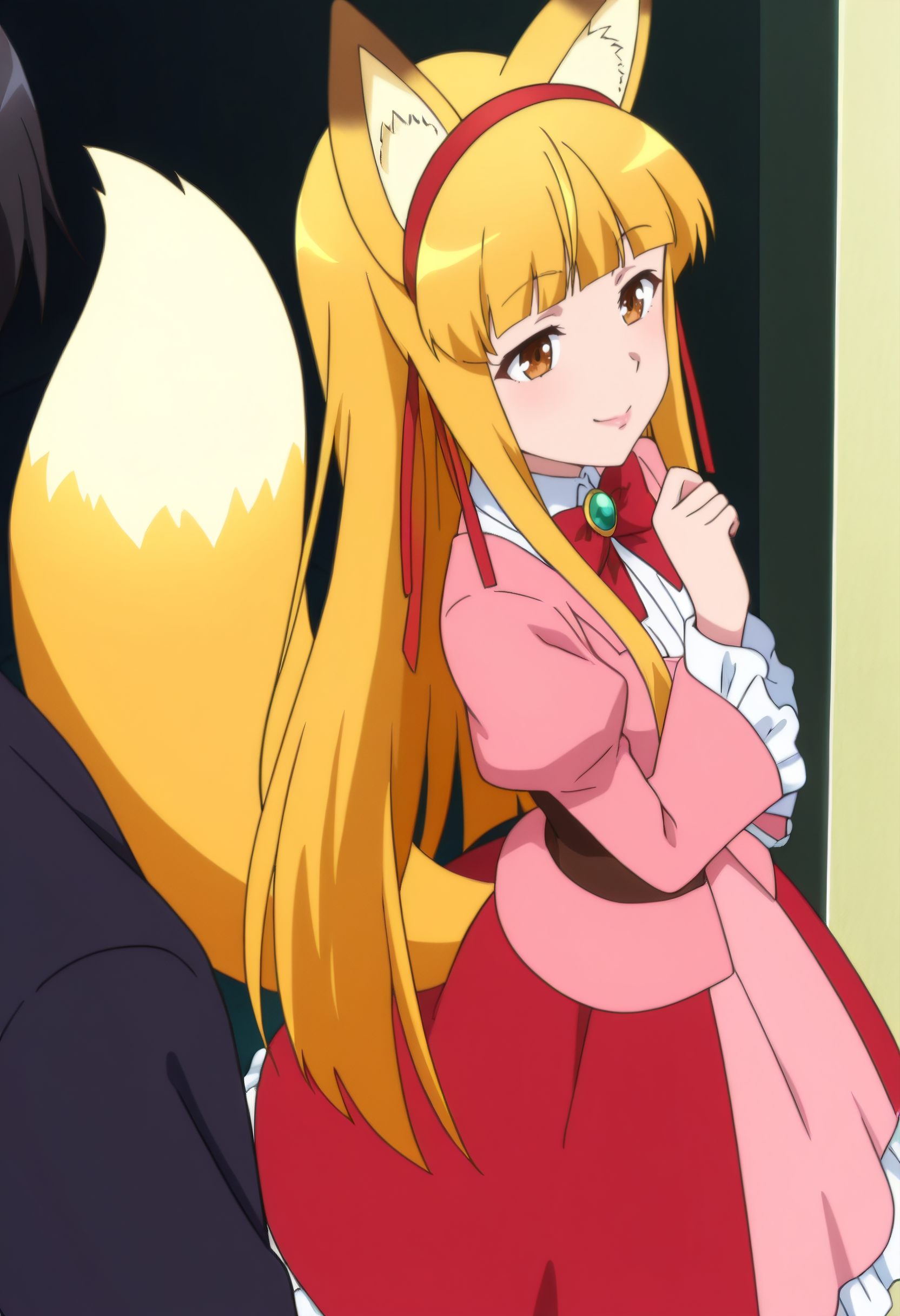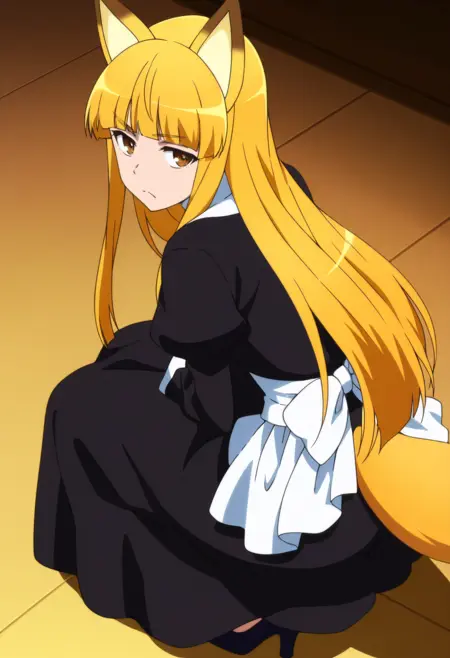 IAWArma, 긴 머리, 금발, 앞머리, 갈색 눈, 동물 귀, 단정한 앞머리, 머리카락 사이로 보이는 눈썹, 동물 귀, 여우 귀, 여우 소녀, 꼬리, 여우 꼬리,