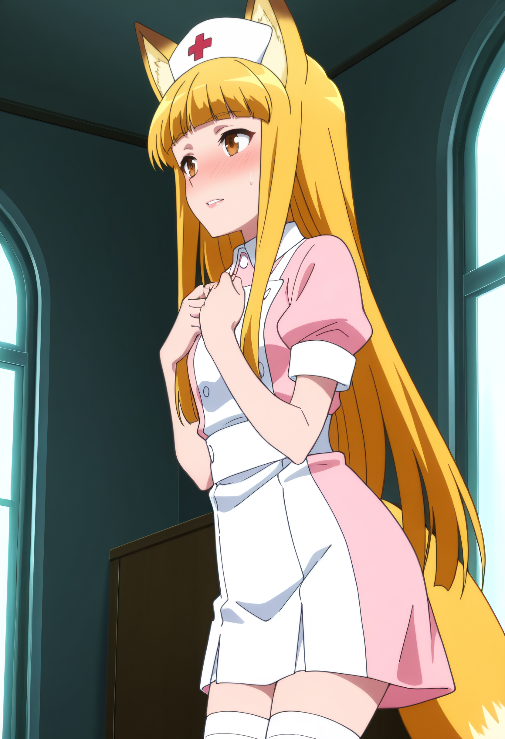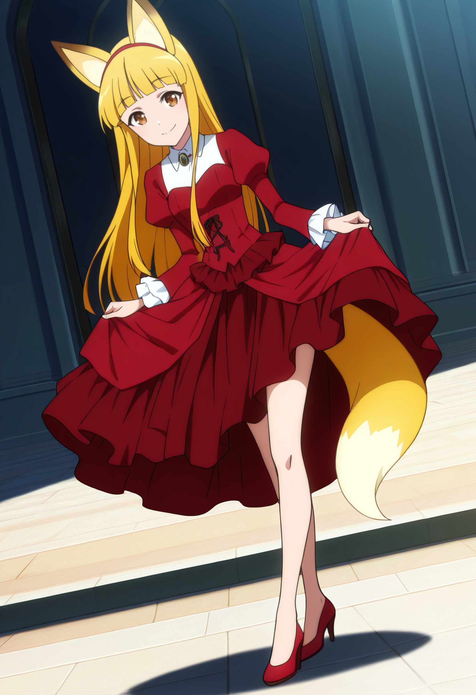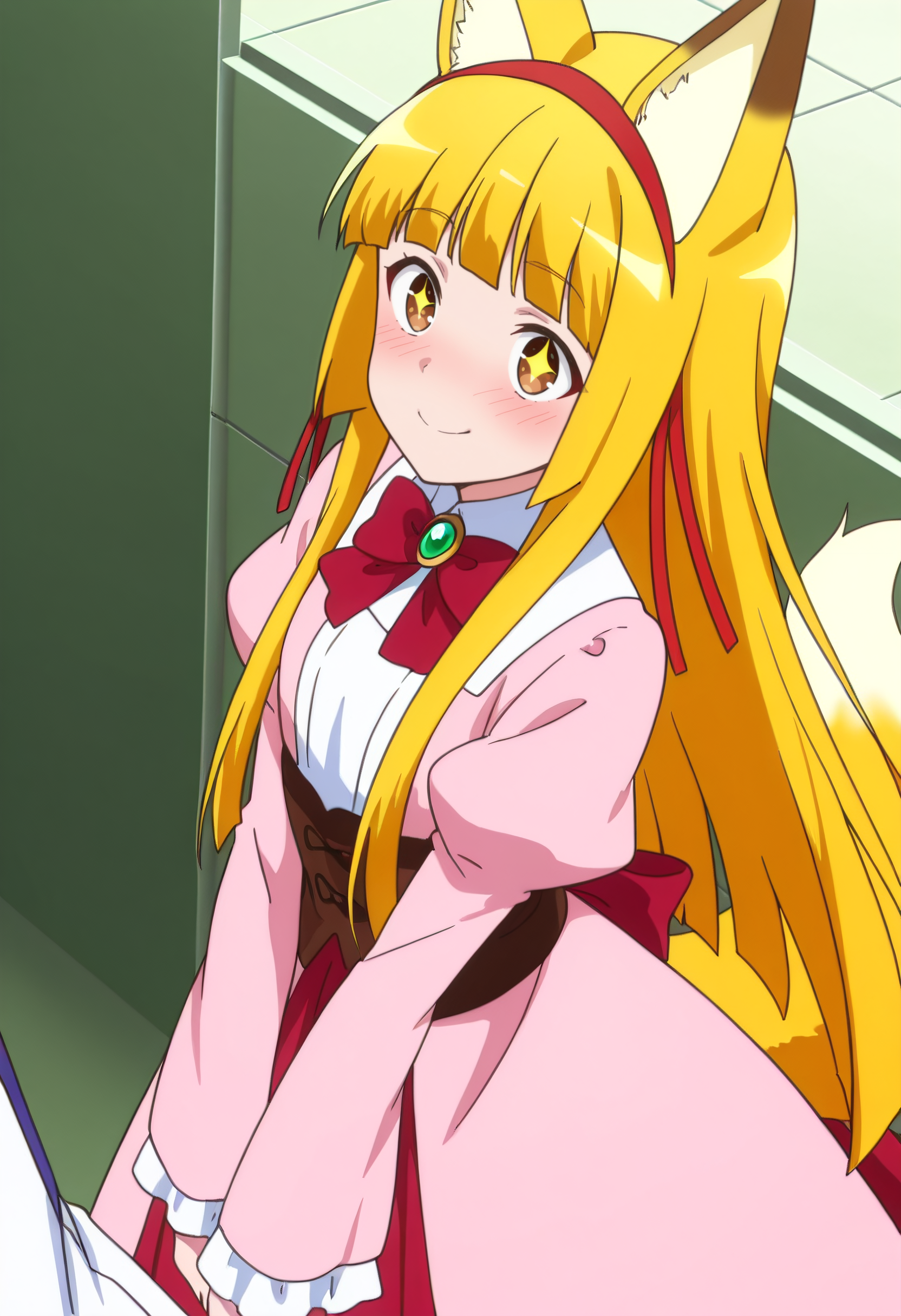 IAWArma, 긴 머리, 금발, 앞머리, 갈색 눈, 동물 귀, 단정한 앞머리, 머리카락 사이로 보이는 눈썹, 동물 귀, 여우 귀, 여우 소녀, 꼬리, 여우 꼬리,