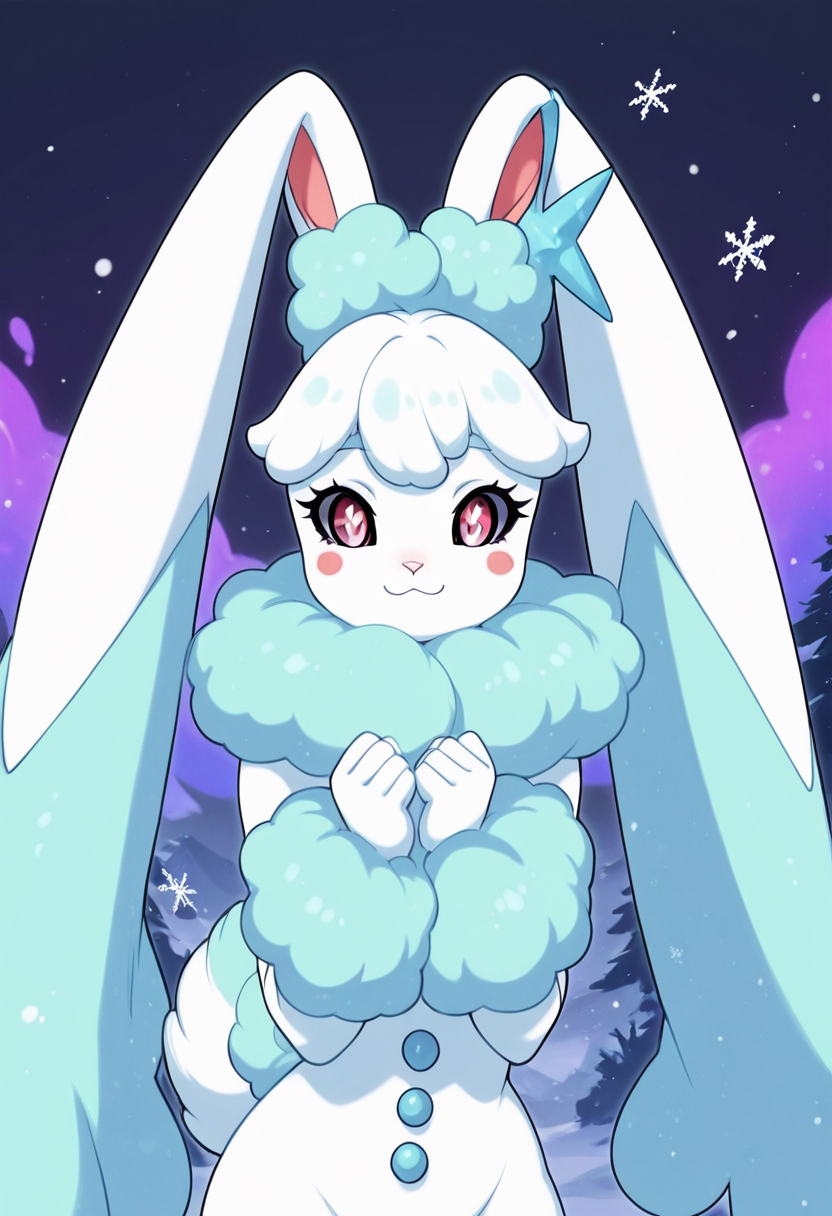 zzSnowskip, 1人娘, シングル, 動物の耳, 尾, 兎の耳, ポケモン(生物), ブラッシュステッカー, 兎の尾, もふもふ, 色付きの白目, 兎, 兎娘, もふもふ女性, 代替色, 動物の鼻, ロップンニー, 白い毛