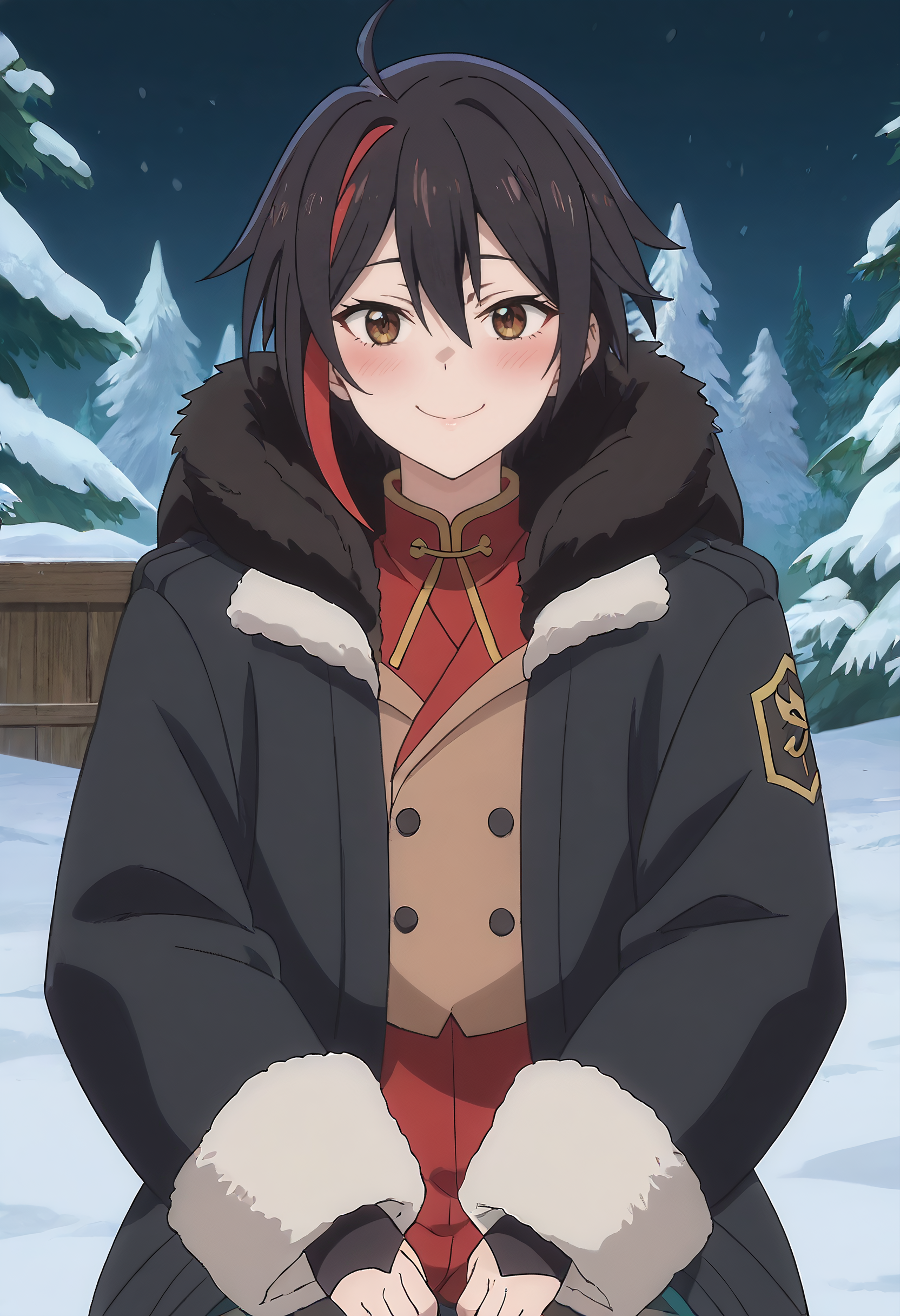 TakahashiWinter、コート、ファー付きコート、ファー付きジャケット、ファー付き袖、ファーのコート、ファーの襟、ファーのトリム、ファー付きフード、長袖、フード、動物の耳、冬服、手袋、ファー付き手袋、
