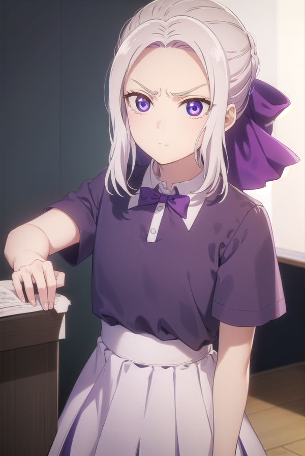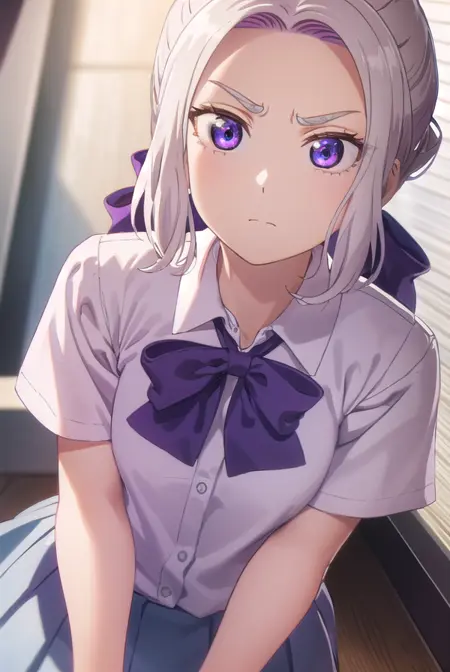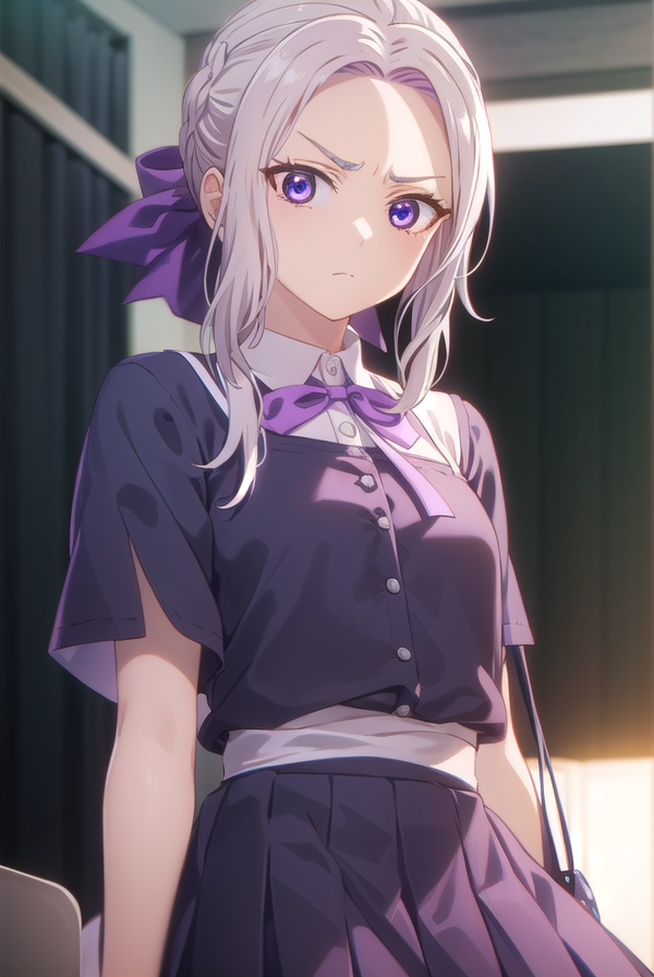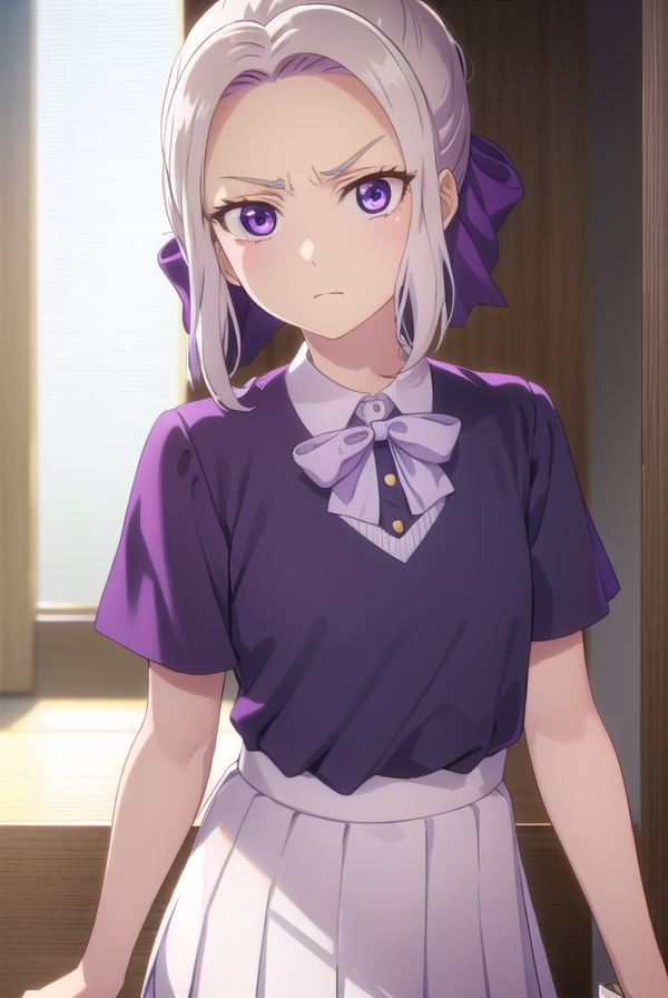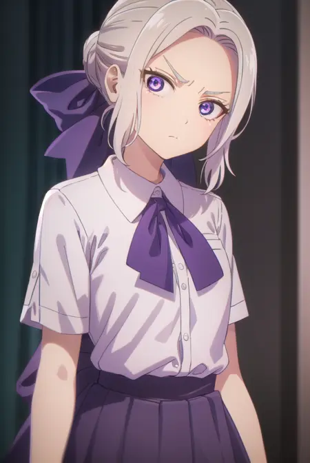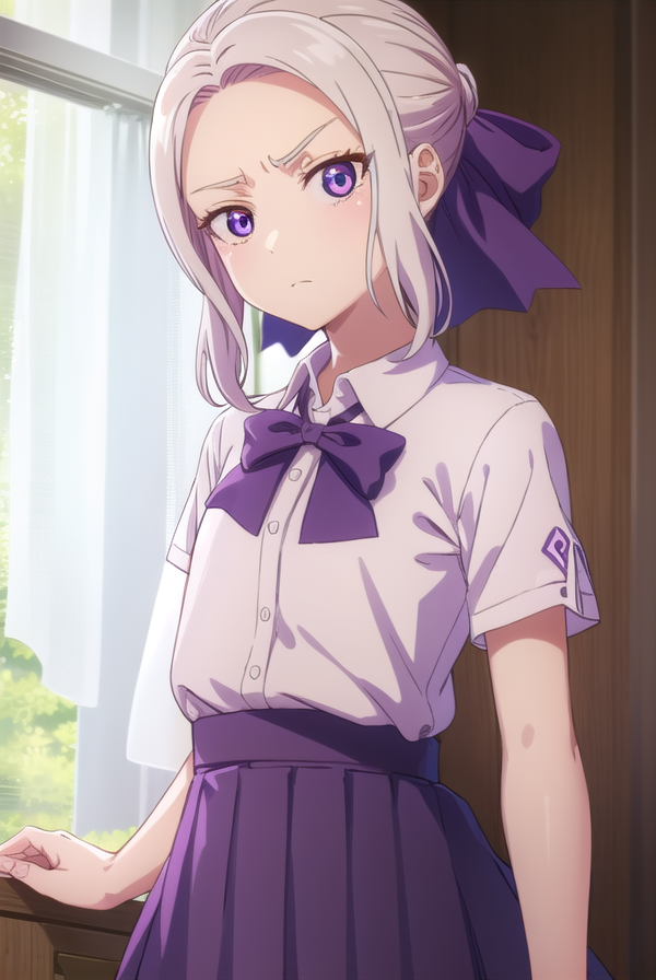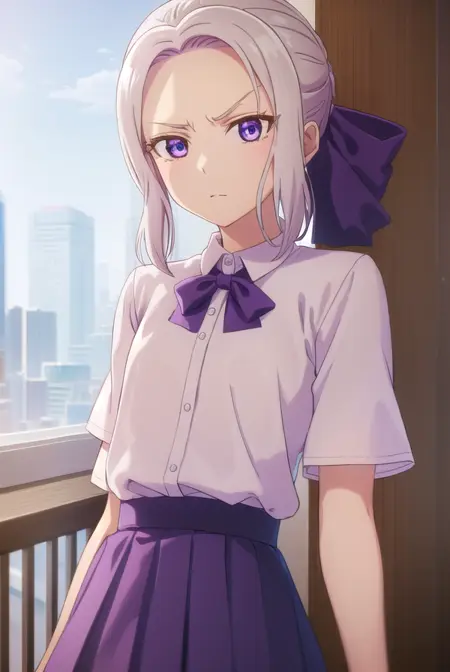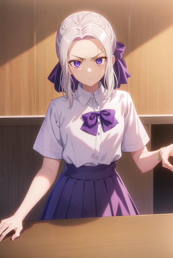 shino kiryuu, (紫の目:1.1), 白髪, 髪リボン, 紫のリボン,