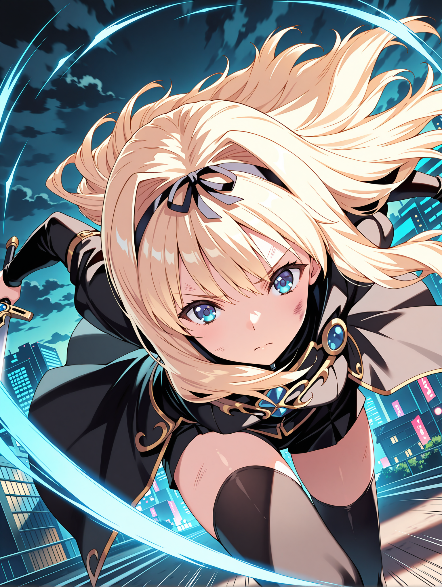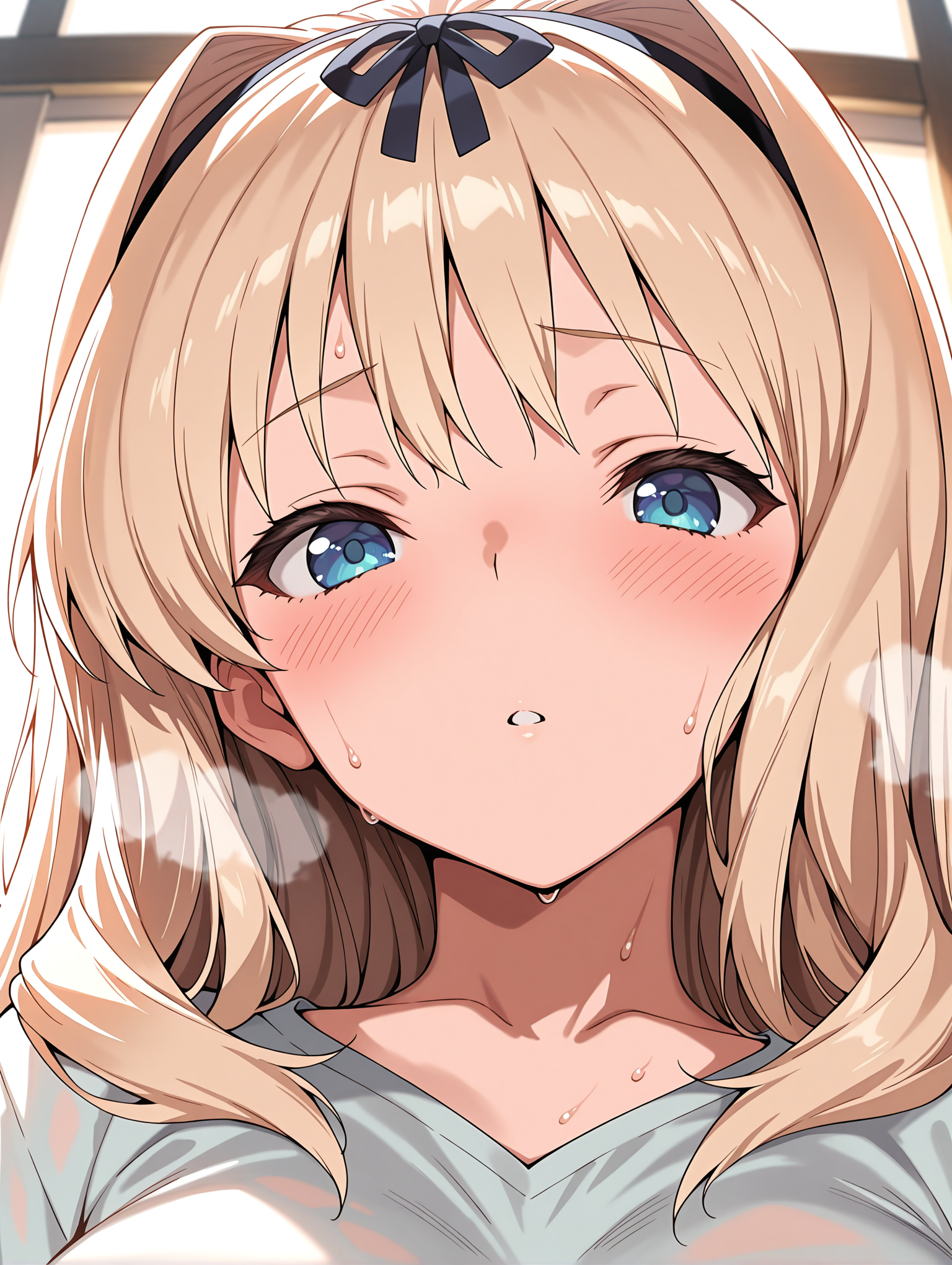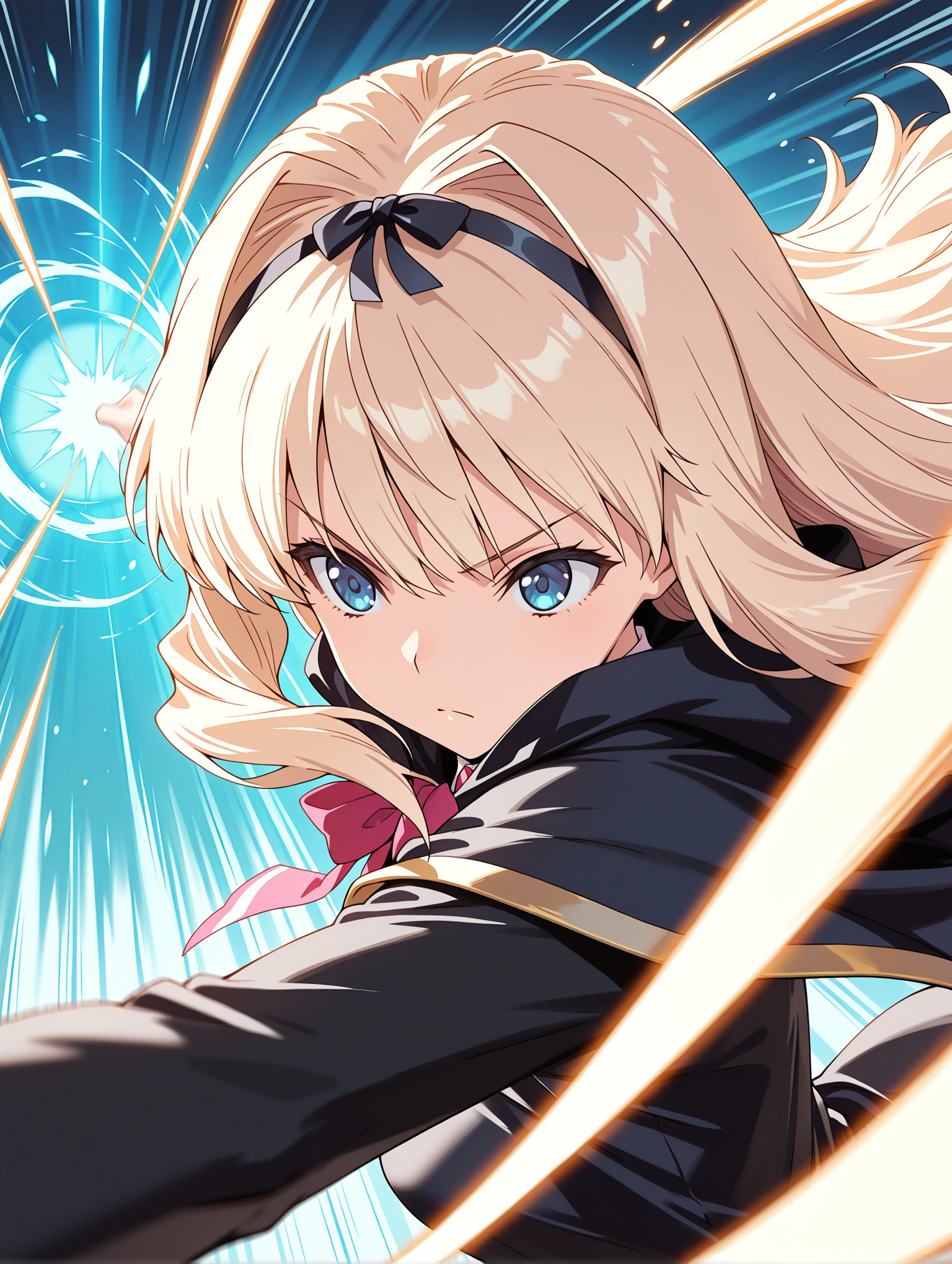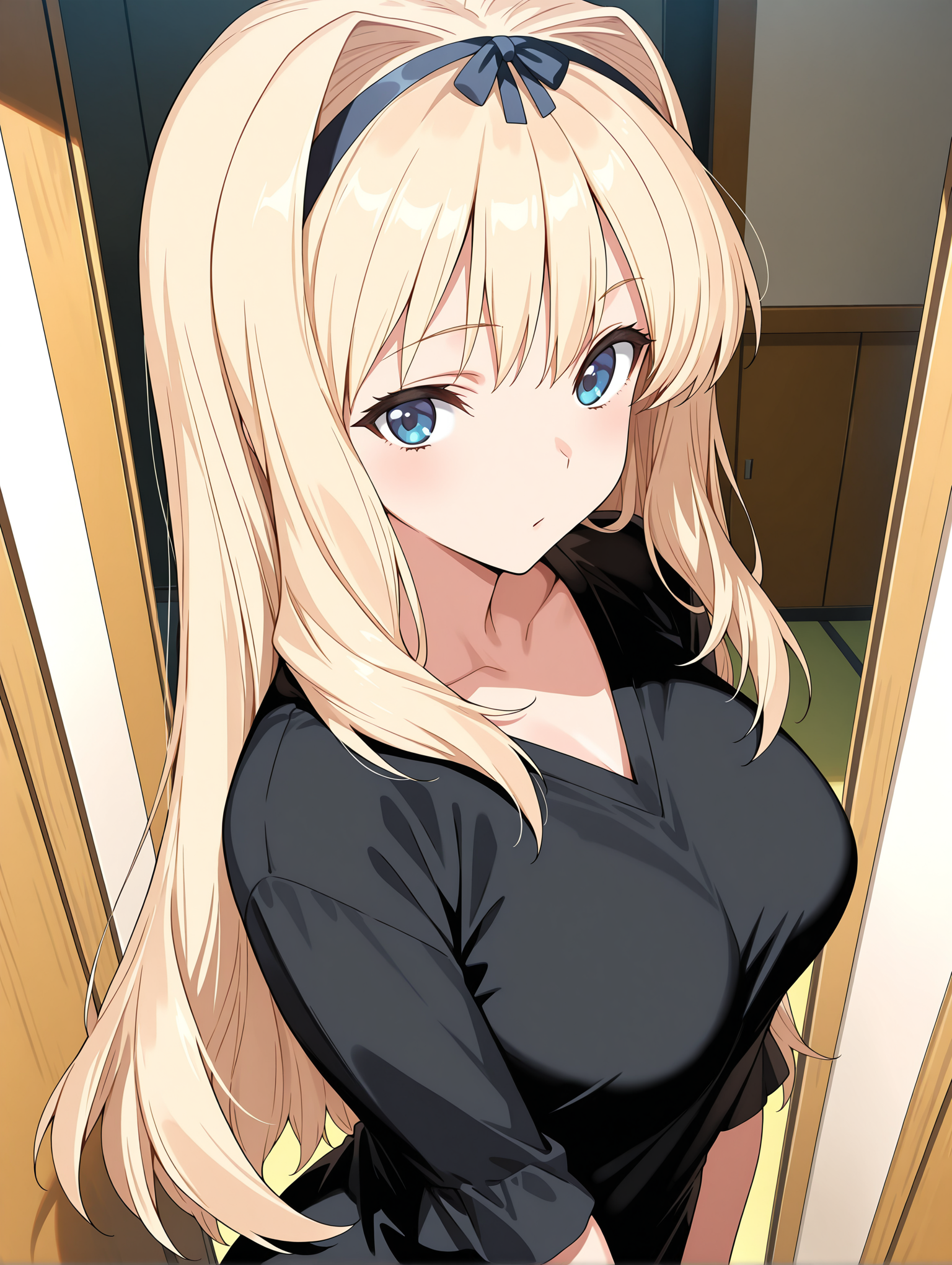 트리거 단어: k_sasara, 검은 머리 리본, 금발, 파란 눈, 긴 머리