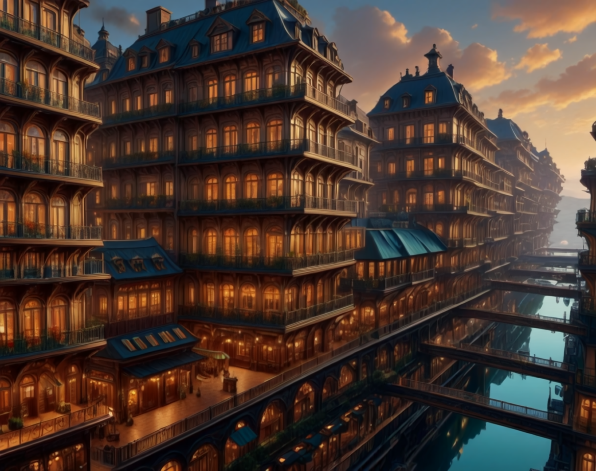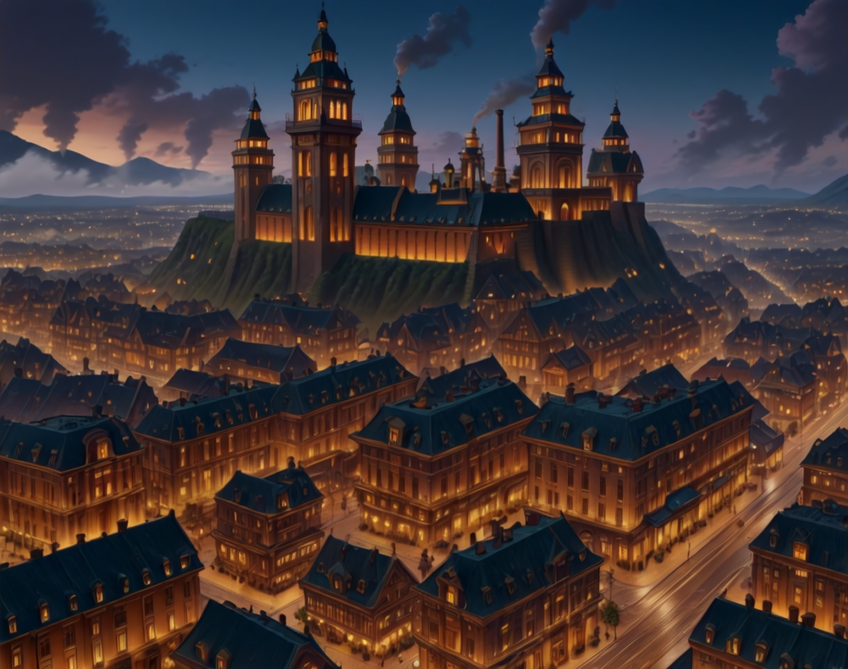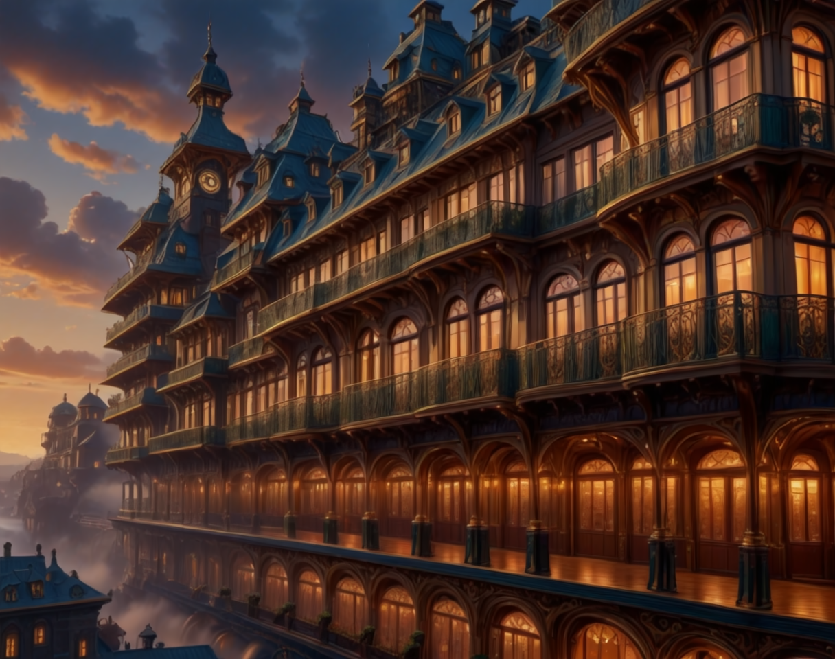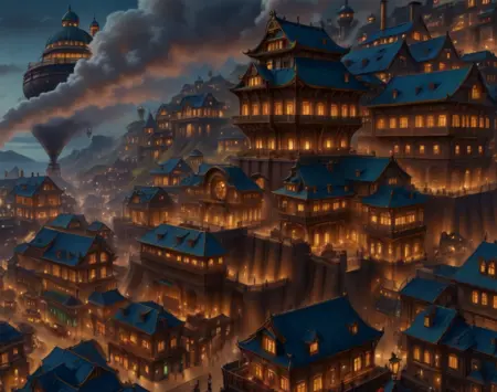 このLoRA向けのプロンプトは次の通りです:(SteamArch, buildings, architecture, steampunk)