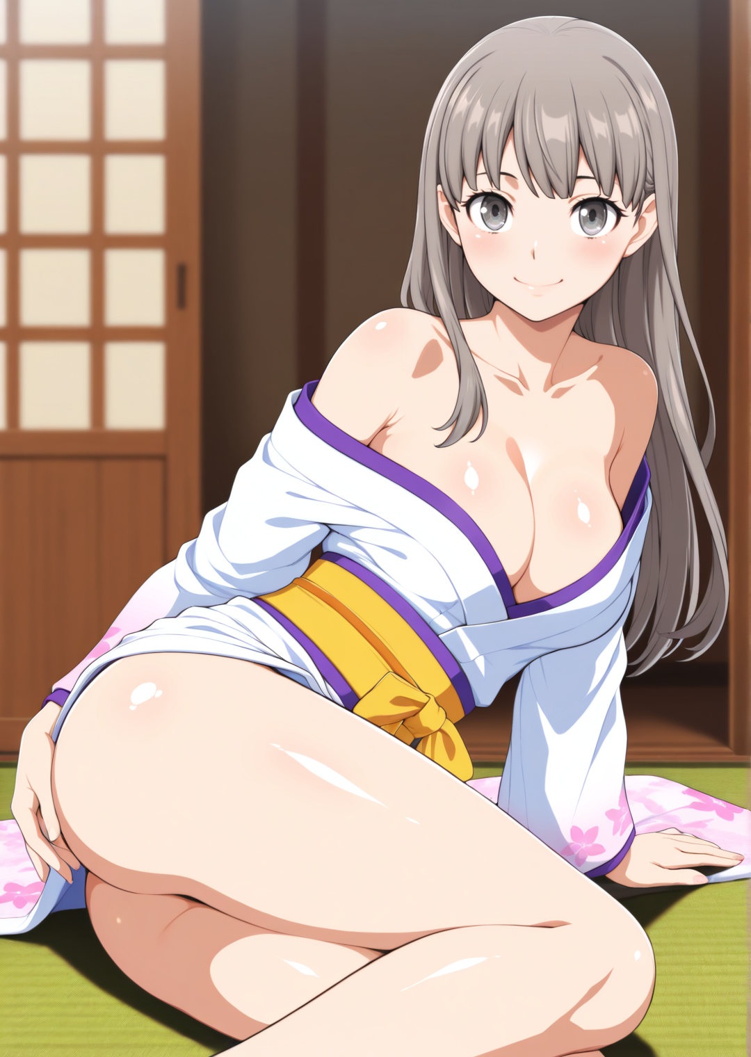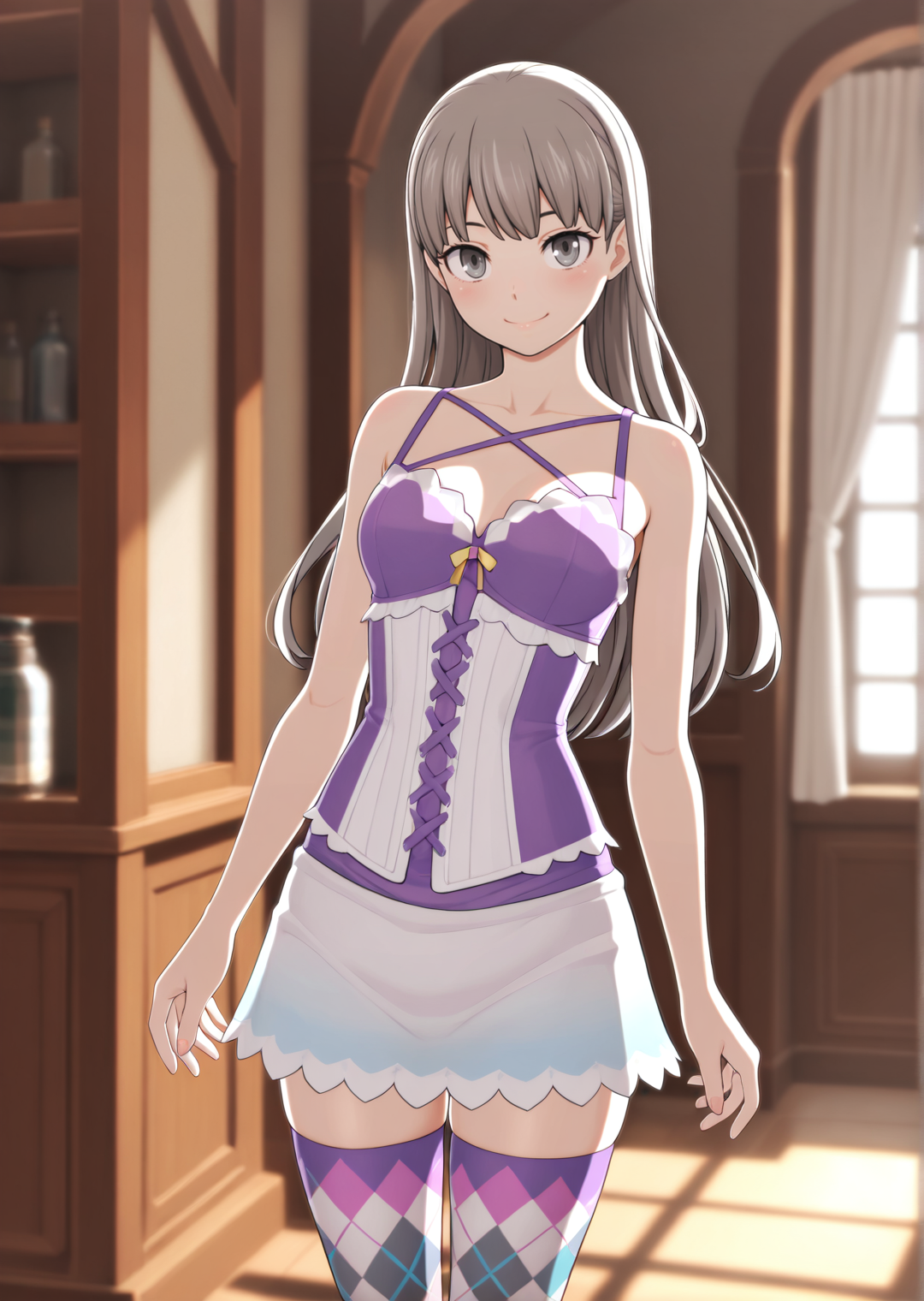 미소노_이노리, 1소녀, 혼자, 회색 눈, 긴 머리, 회색 머리