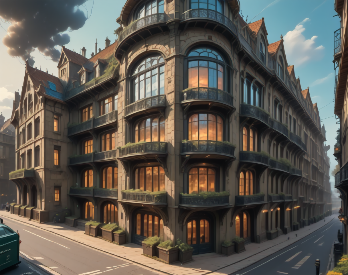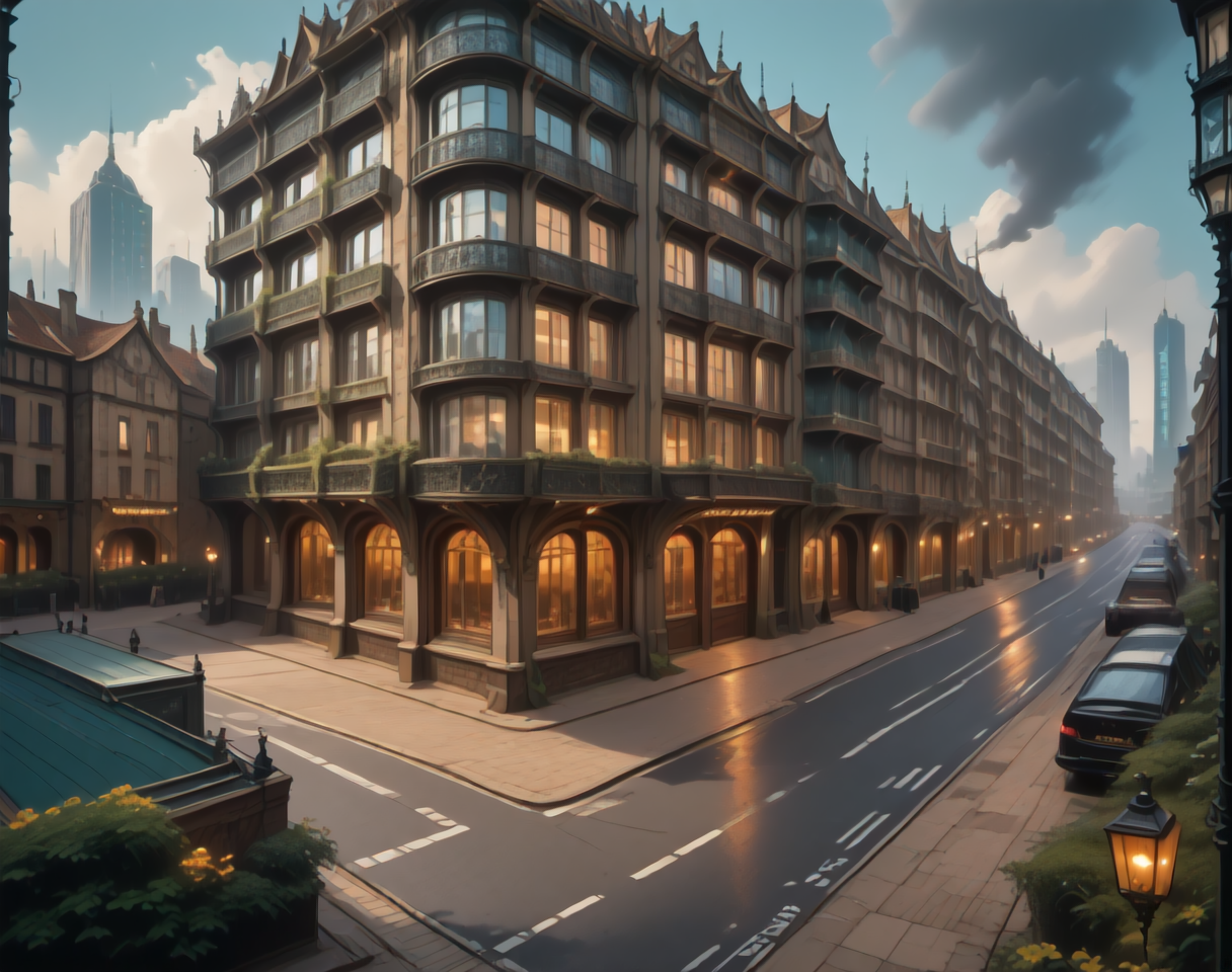 이 LoRA에 대한 프롬프트는 (SteamArch, buildings, architecture, steampunk)입니다.