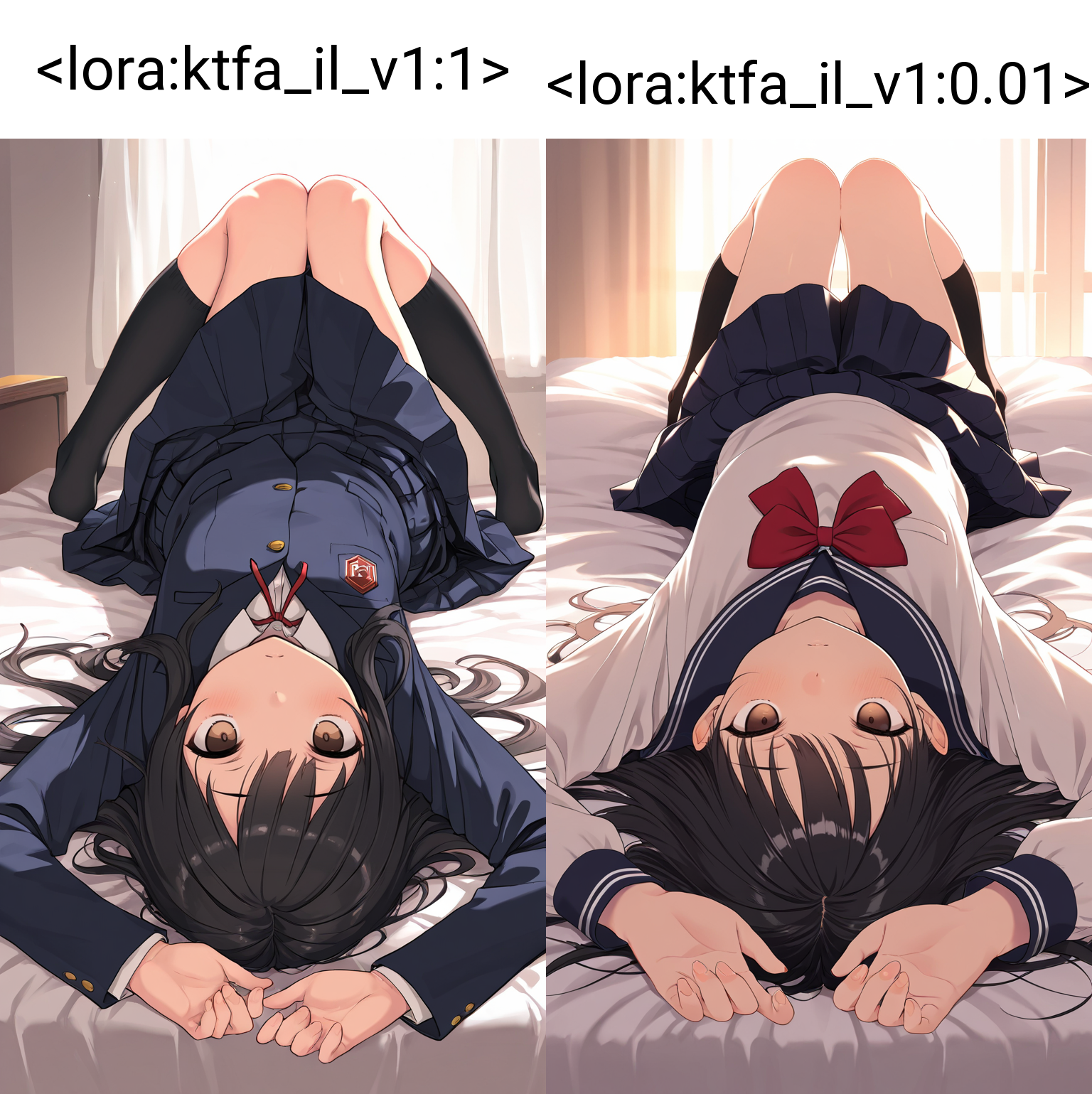 이 LoRA는 “무릎을 모으고 발을 벌리는”에 대한 편향을 적용하여 의도한 표현의 출력을 안정화합니다.